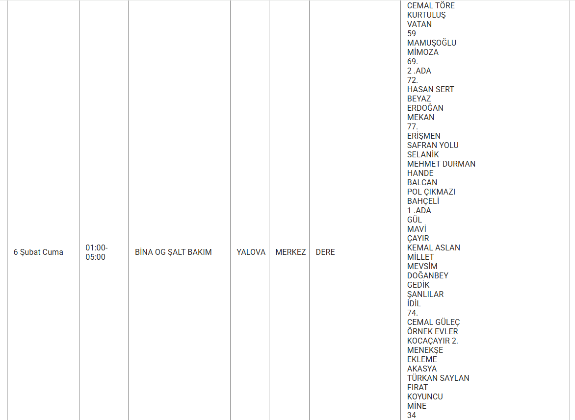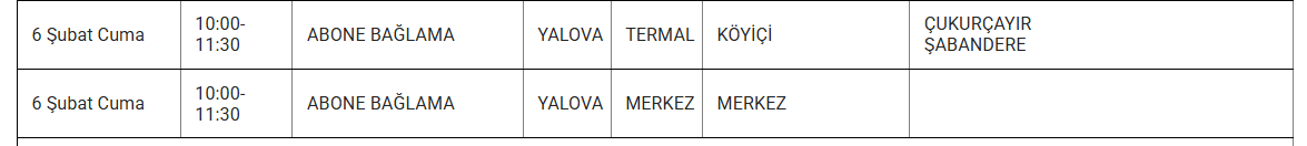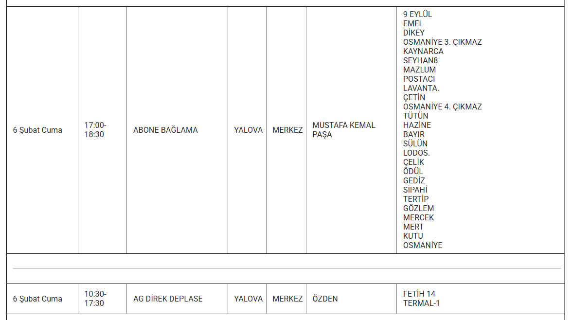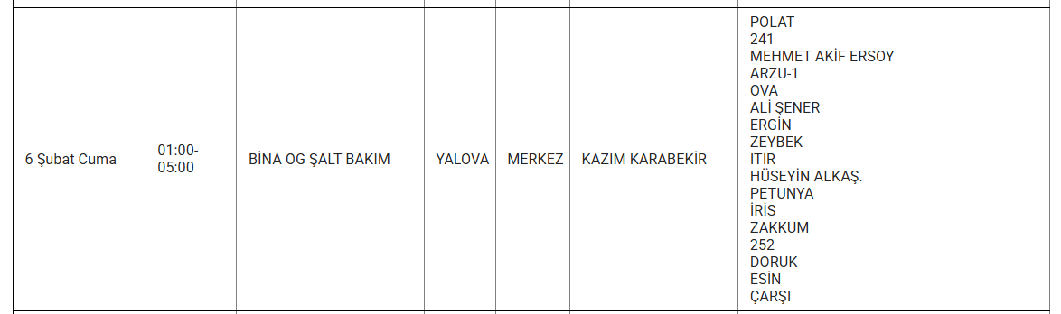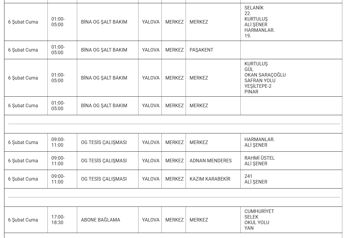 Aşağıda, etkilenecek bölgeler ve kesinti saatleri detaylı olarak listelenmiştir: