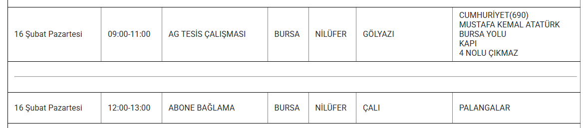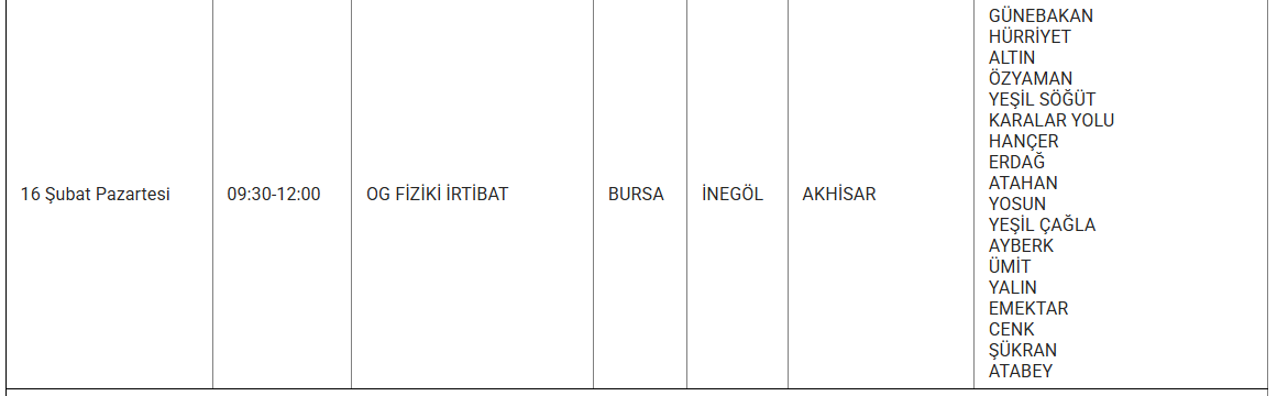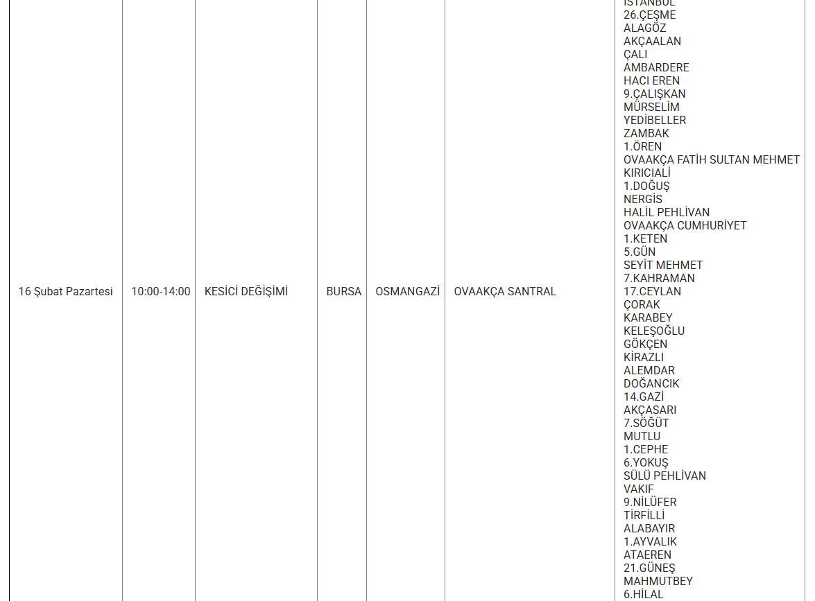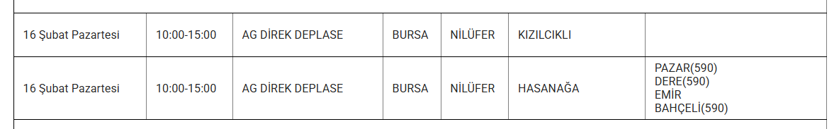 Uludağ Elektrik Dağıtım AŞ (UEDAŞ), şebeke tesis, bakım ve onarım çalışmaları kapsamında 16 Şubat 2026 Pazartesi günü Bursa merkez ve ilçelerinde planlı elektrik kesintileri uygulanacağını duyurdu. Yapılan açıklamaya göre kesintiler, altyapı çalışmalarının güvenli ve sürdürülebilir şekilde yürütülmesi amacıyla gerçekleştirilecek.