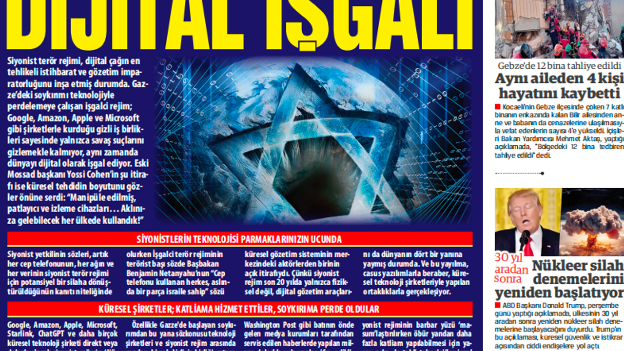 Gazze ve tüm Filistin’de işlenen insanlık suçlarının üzerini örtmek için algoritmalar devreye sokuldu. Siyonist terör rejimi yıllardır yürüttüğü işgal faaliyetlerini ve soykırım niteliğindeki katliamlarını Google, Amazon, Microsoft ve Apple gibi küresel teknoloji şirketlerinin sağladığı dijital altyapılar üzerinden de yürütüyor. Bu şirketlerle yapılan gizli anlaşmalar, bulut sistemlerinde saklanan veriler, yapay zekâyla hedeflenen siviller… Hepsi, Tel Aviv rejiminin savaş suçlarını hem kolaylaştırmak hem de dünyadan gizlemek için kurduğu teknolojik kalkanın parçaları.