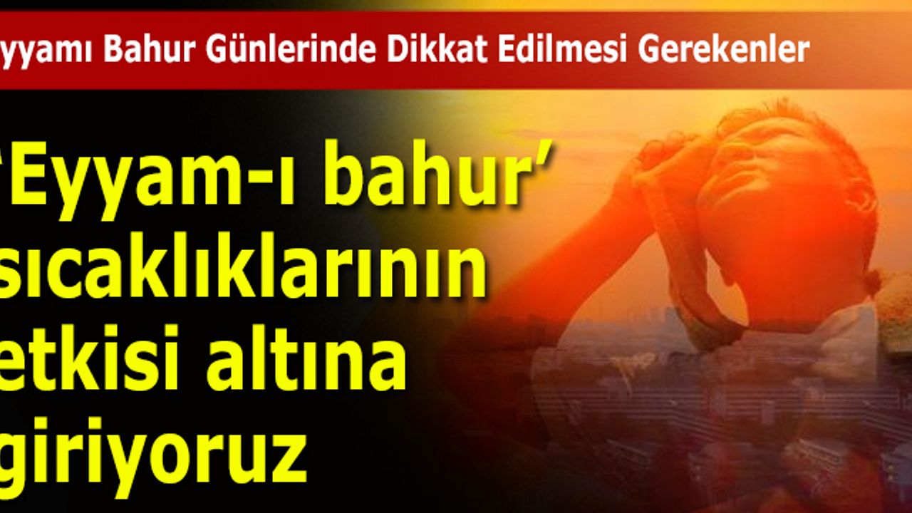 Yurt genelinde hava sıcaklıkları artmaya devam ediyor. Uzmanlar iyice yaklaşan eyyam-ı bahur sıcaklıklarına karşı vatandaşları ciddi uyarılarda bulundu. Peki eyyam-ı bahur sıcakları ne demek ve ne zaman gelecek? İşte konuyla ilgili detaylar...