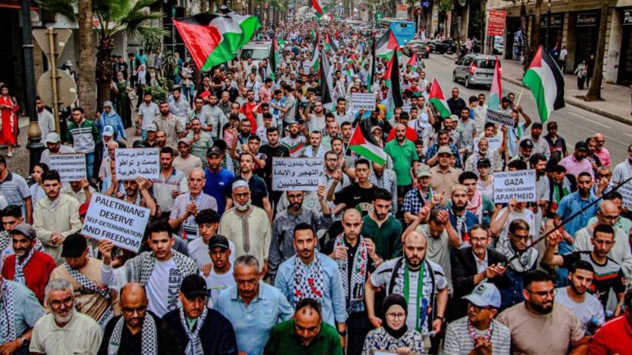 Fas'ın kuzeyindeki Tanca kentinde, binlerce kişi Filistin'e destek ve işgalci rejimle normalleşmeye karşı büyük bir protesto gösterisi düzenledi. Gösteri, Filistin’i Destekleme ve Normalleşmeye Karşı Fas Cephesi’nin yerel sekreterliğinin çağrısıyla gerçekleşti.