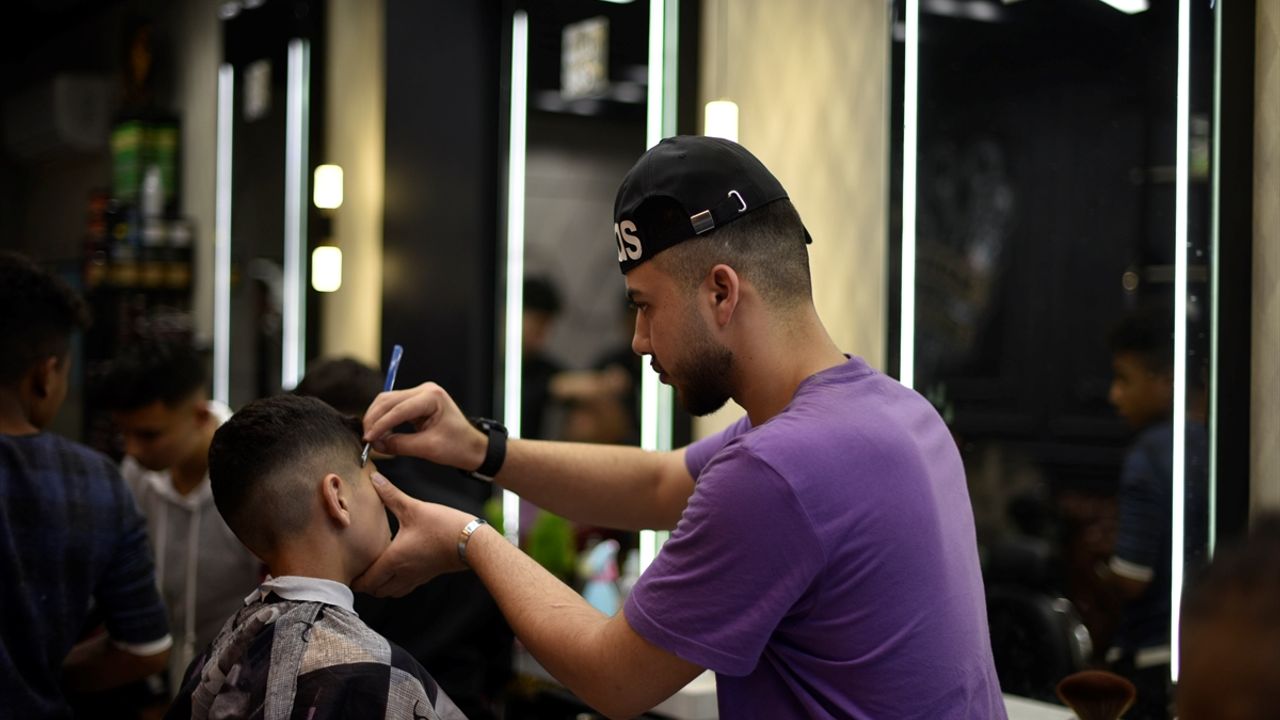 Abluka altındaki Gazze Şeridi'nin Han Yunus kentinde, Ramazan Bayramı nedeniyle berberlerde yoğunluk yaşandı.