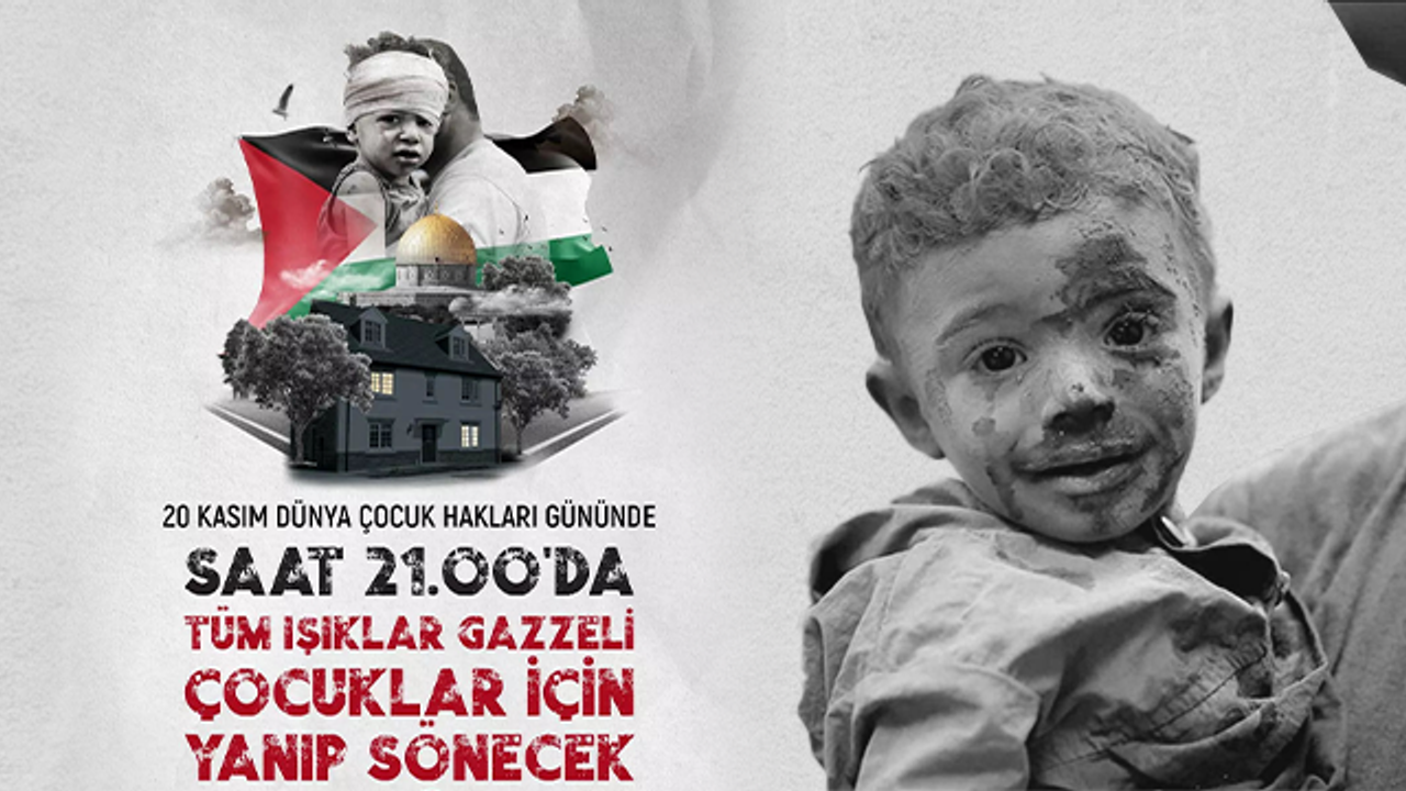 "İsrail tarafından işlenen çocuk katliamları sonlanana kadar sürmesini planladığımız kampanya kapsamında ilk etkinlik olarak 20 Kasım Pazartesi günü saat 21.00'de yurt içi ve yurt dışında ışık kapatıp açma eylemi gerçekleştireceğiz. Devam eden günlerde benzer etkinliklerle çocuk ölümlerine karşı uluslararası bir kamuoyu ve küresel direnç oluşmasını arzulamaktayız."