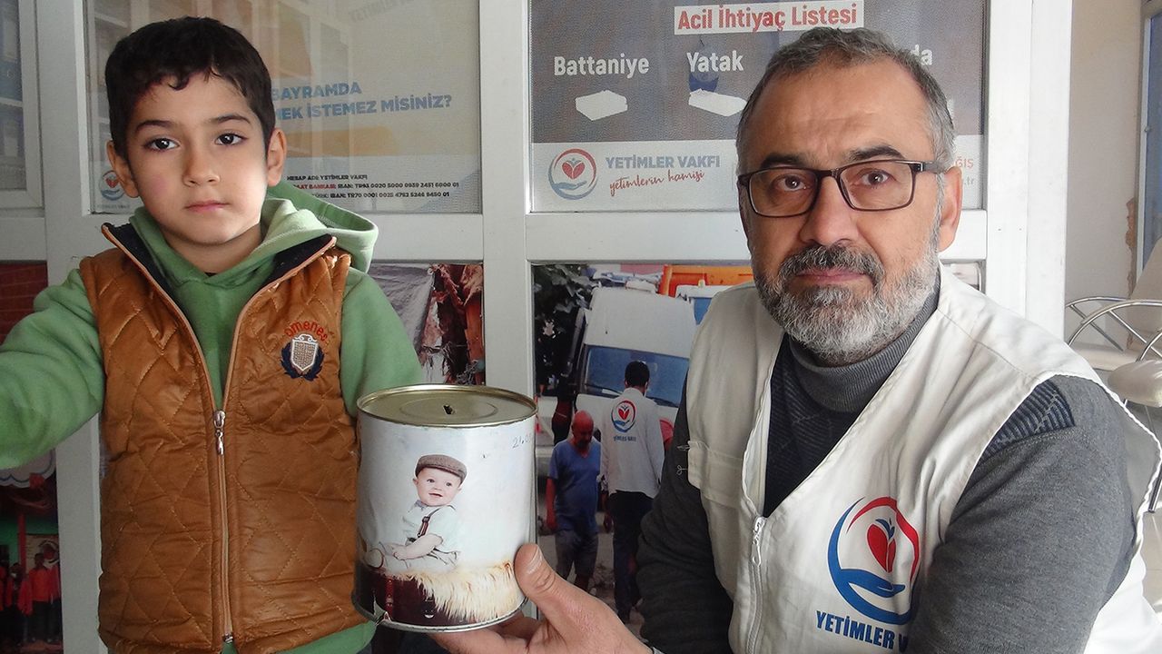 5 yaşındaki Musab kumbarasını depremzede ailelere verdi