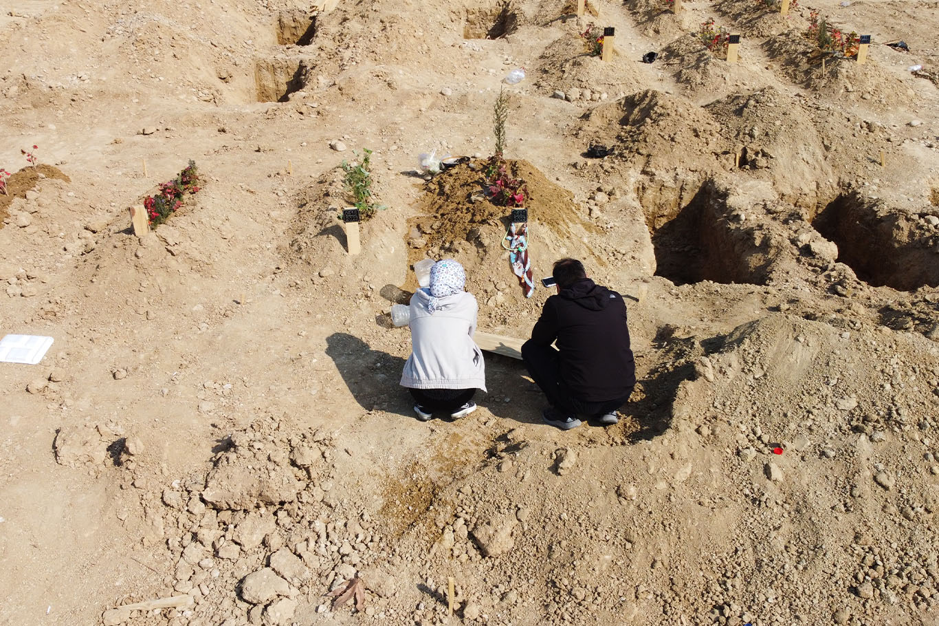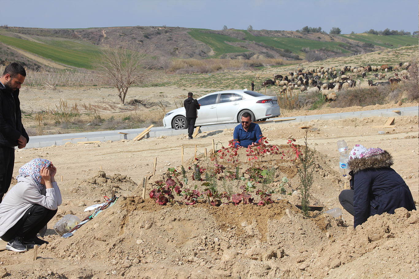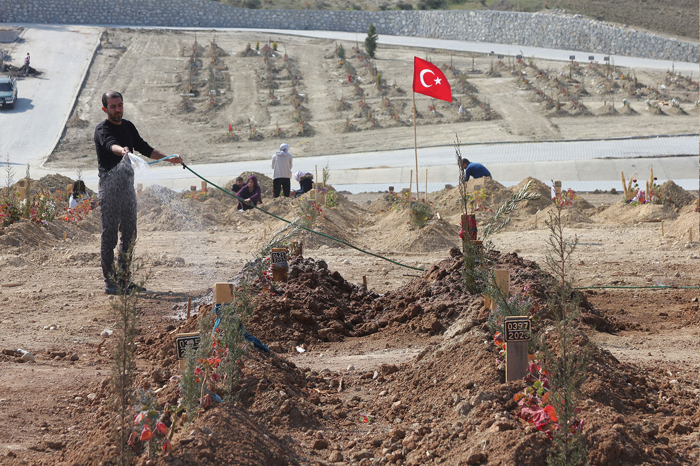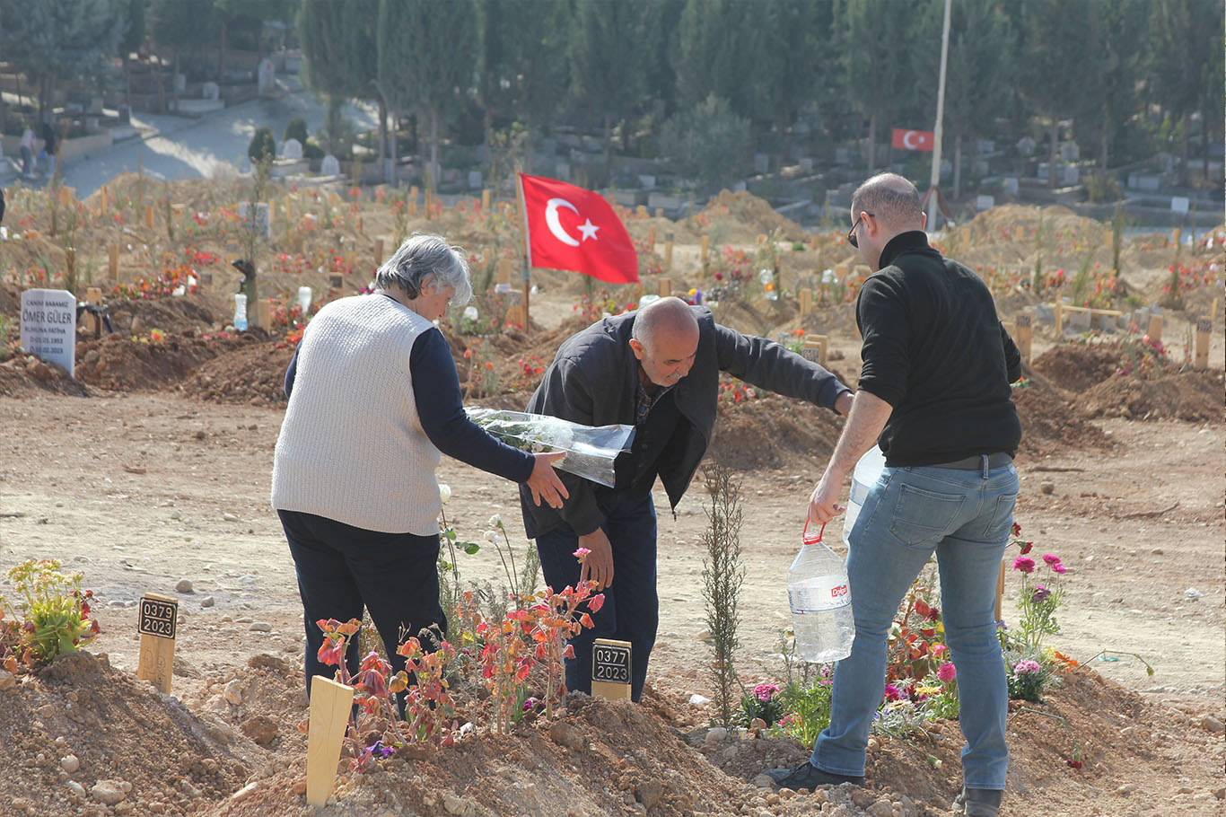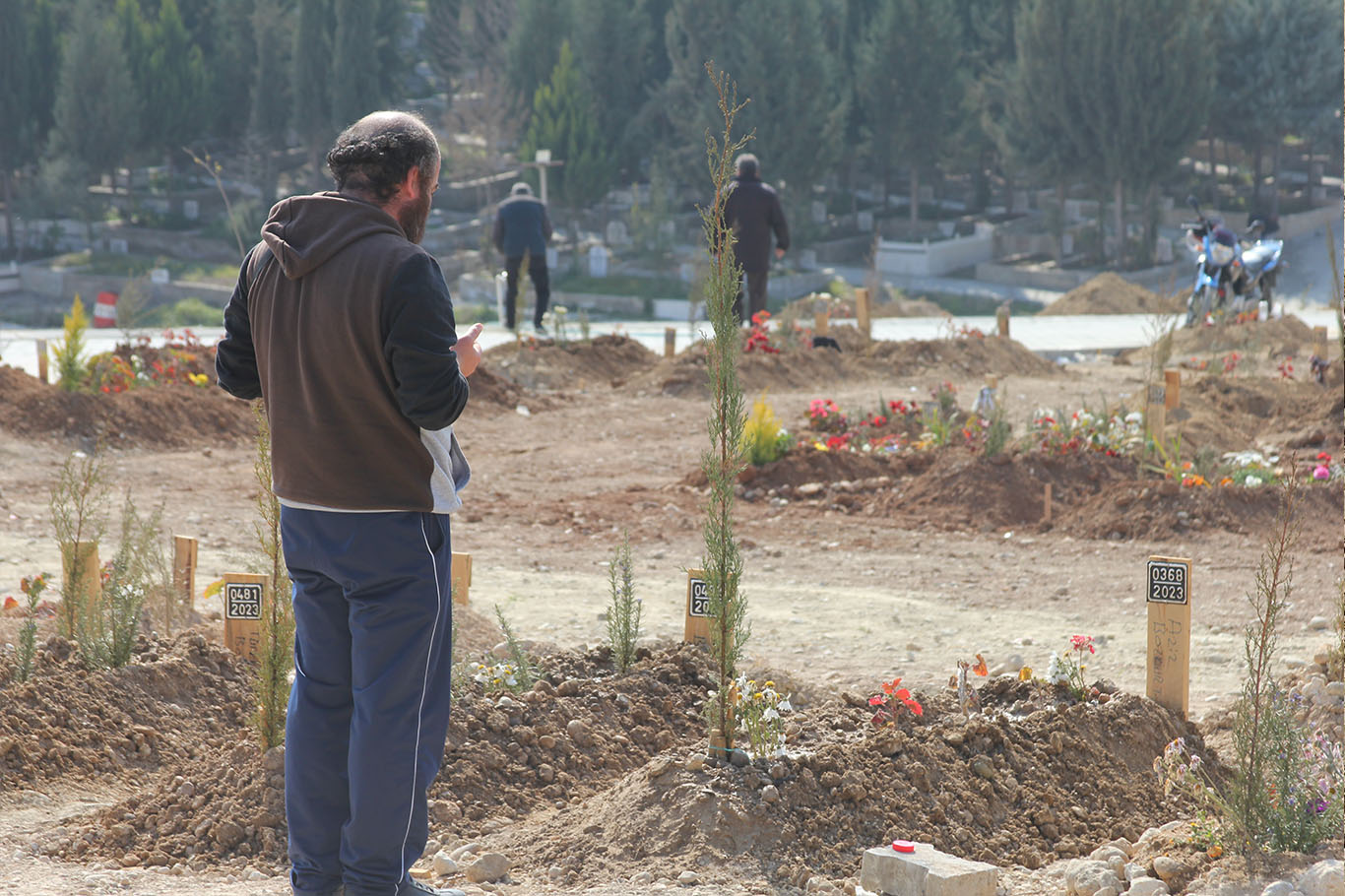 Adana'da depremde hayatını kaybedenlerin mezarları hüzünlendiriyor