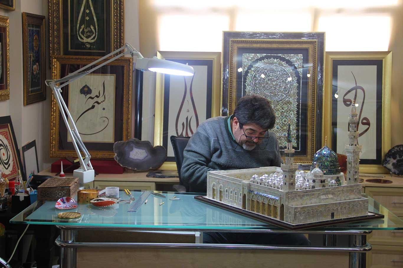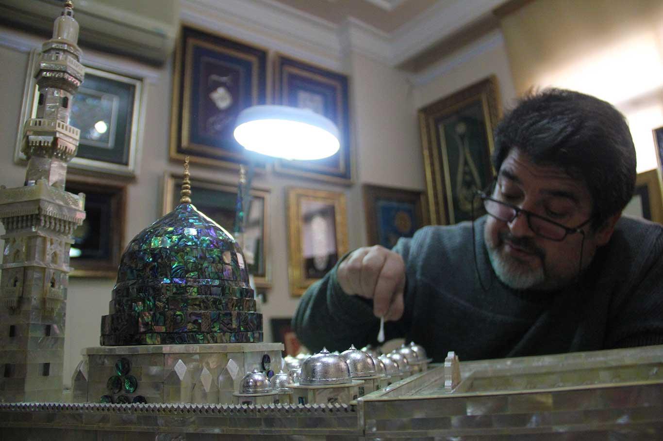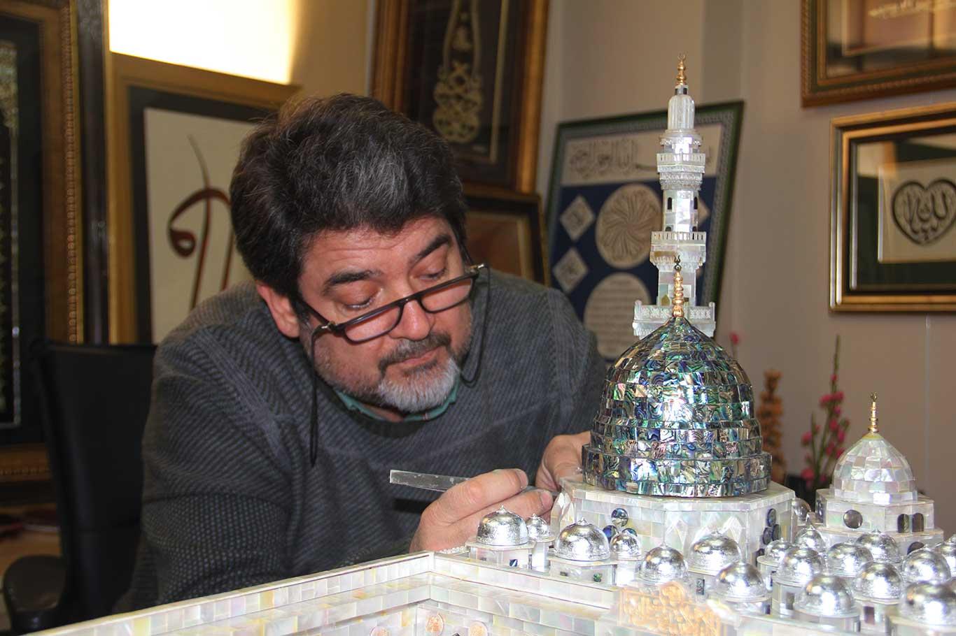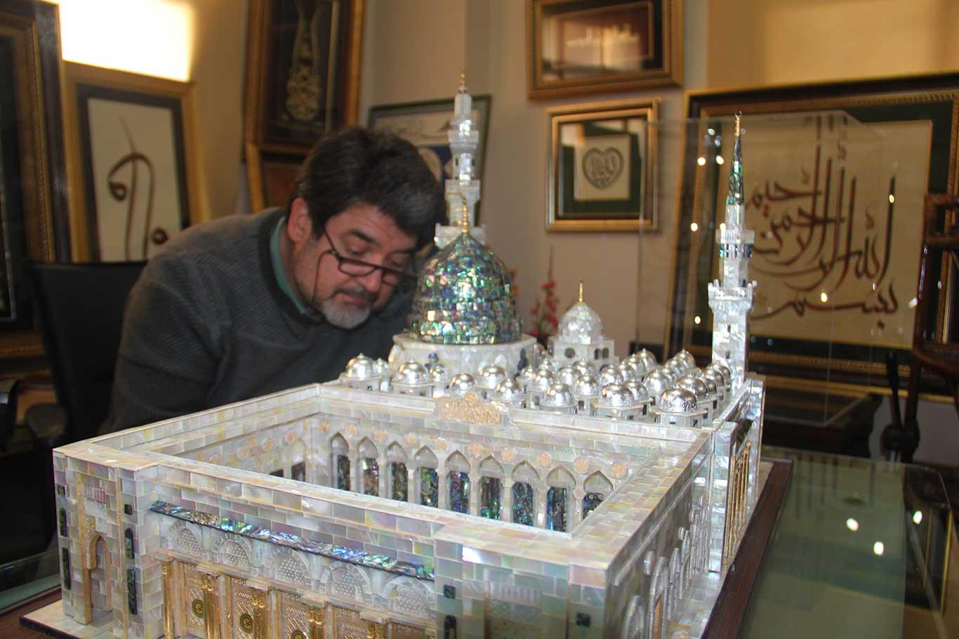 Adanalı öğretmen, sedef parçalarından Mescid-i Nebi maketini yaptı