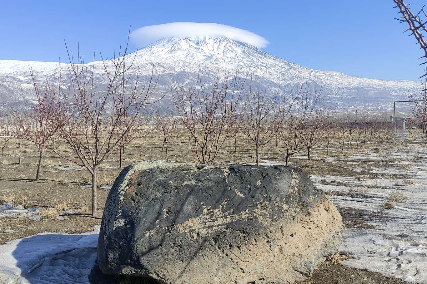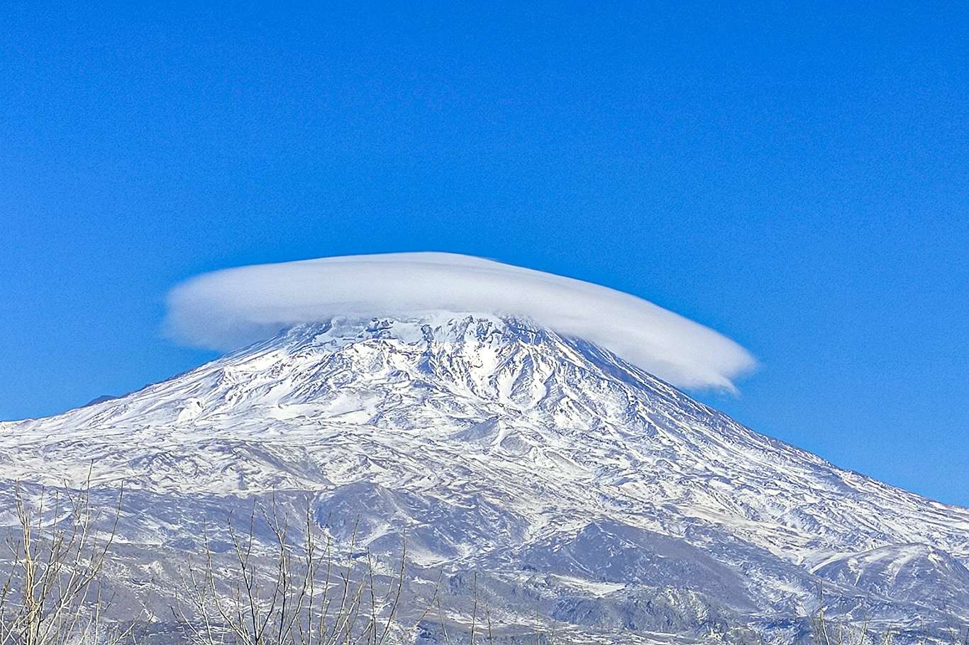Ağrı Dağı zirvesindeki bulutlar takke şeklini aldı