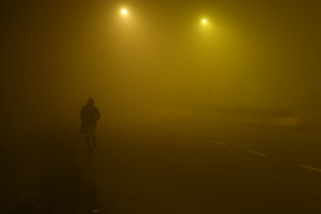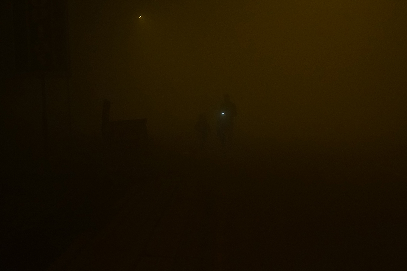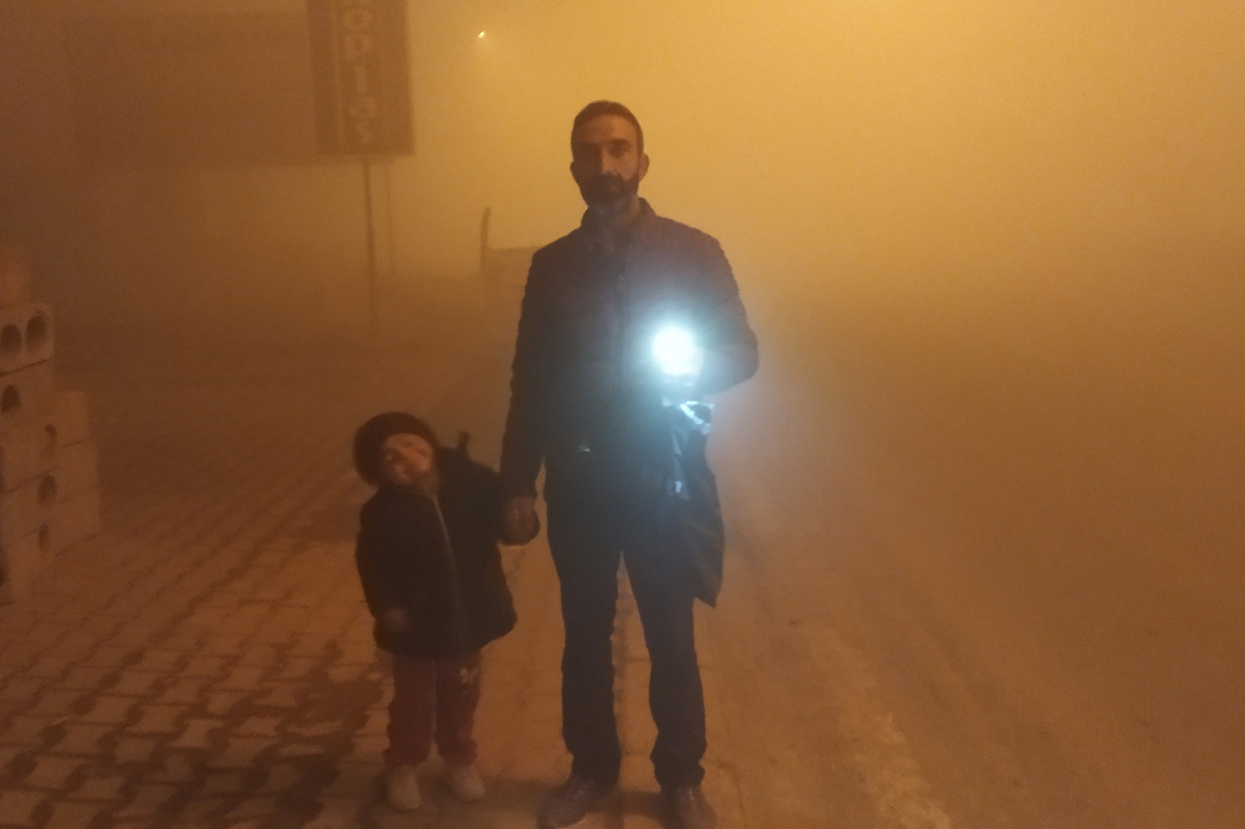 Ağrı'da yoğun sis nedeni ile görüş mesafesi düştü, önlerini görmek için vatandaşlar telefon ışığında ilerlemeye çalıştı