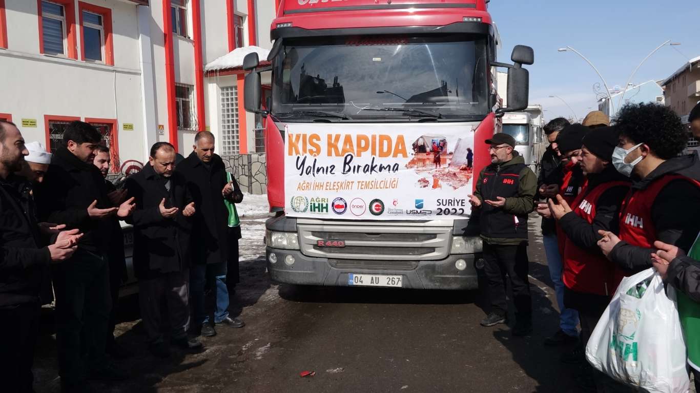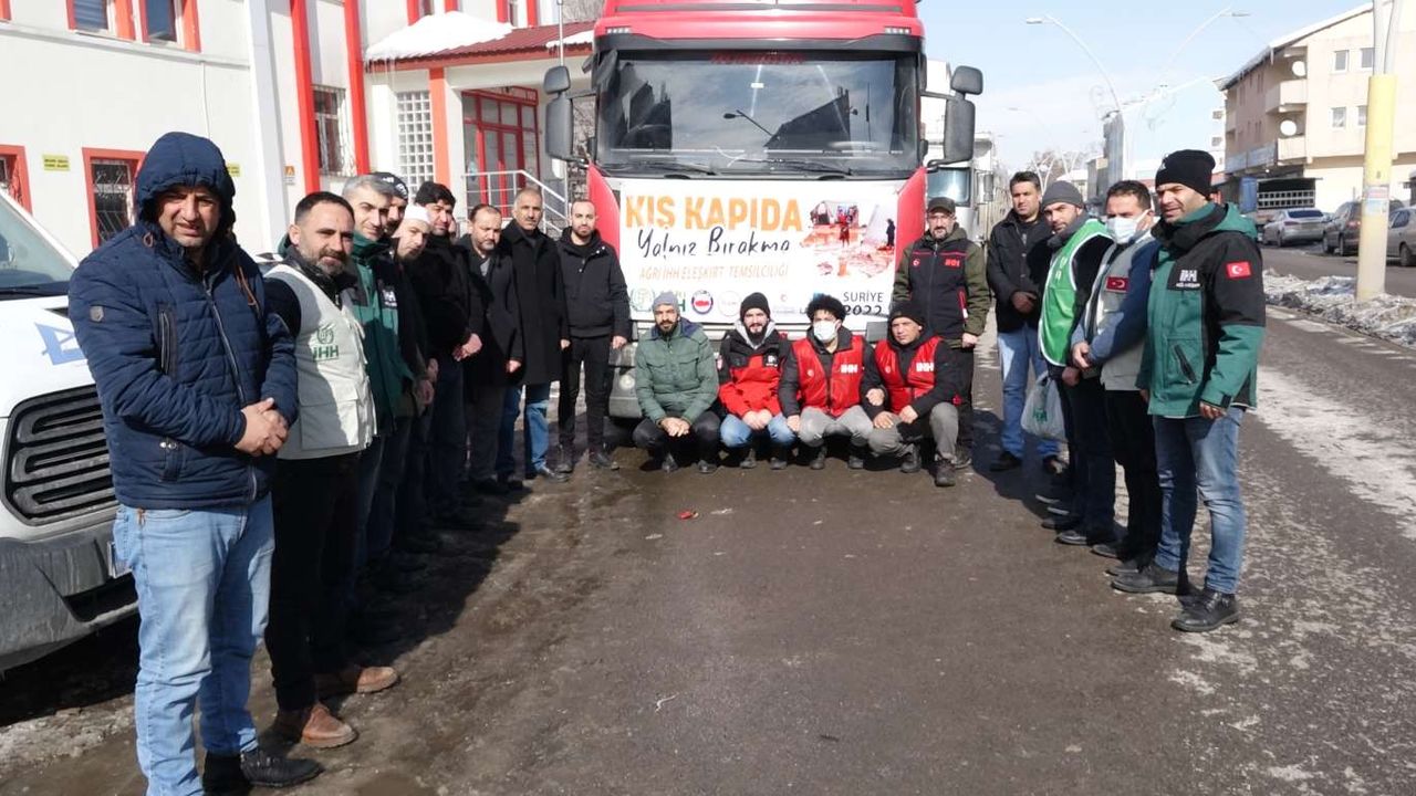 Ağrı'dan Suriye'ye iki tır dolusu yardım yola çıktı