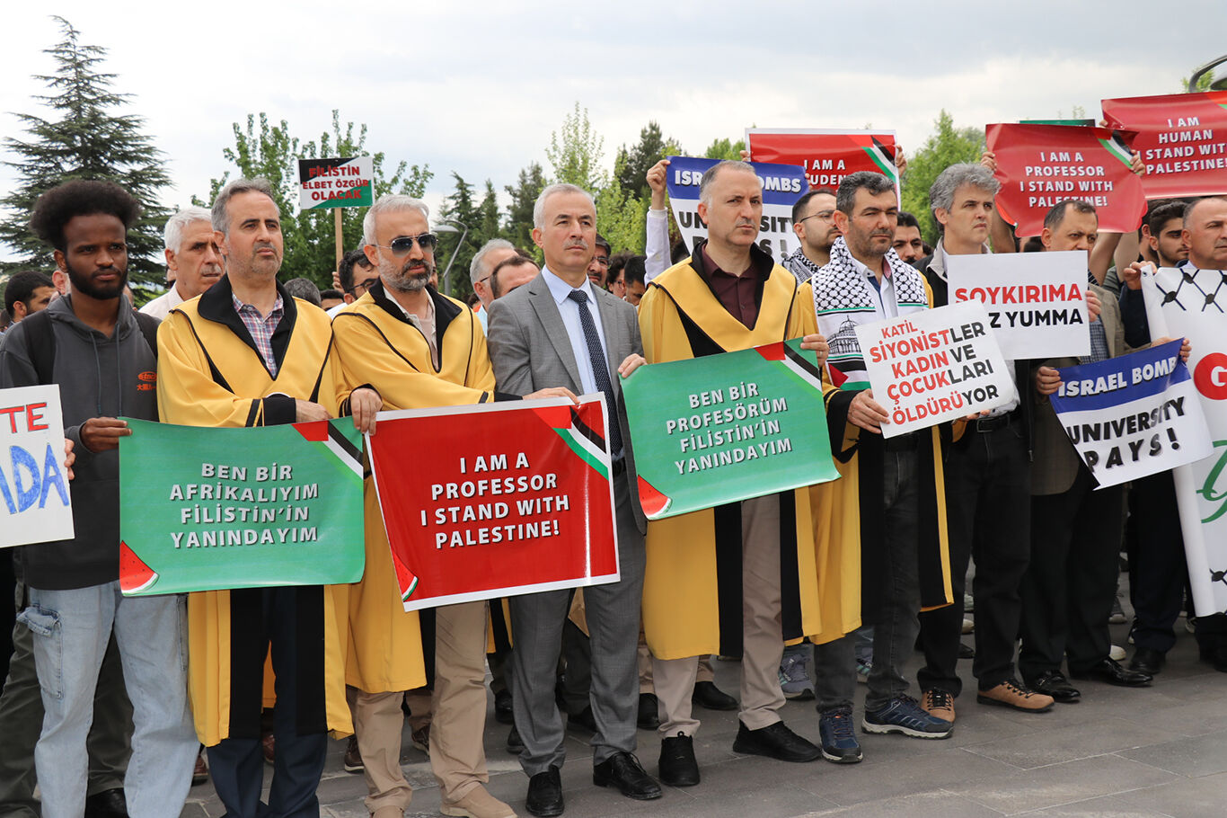 Akademisyen ve öğrenciler Gazze için cübbe ve kalemlerini bıraktı