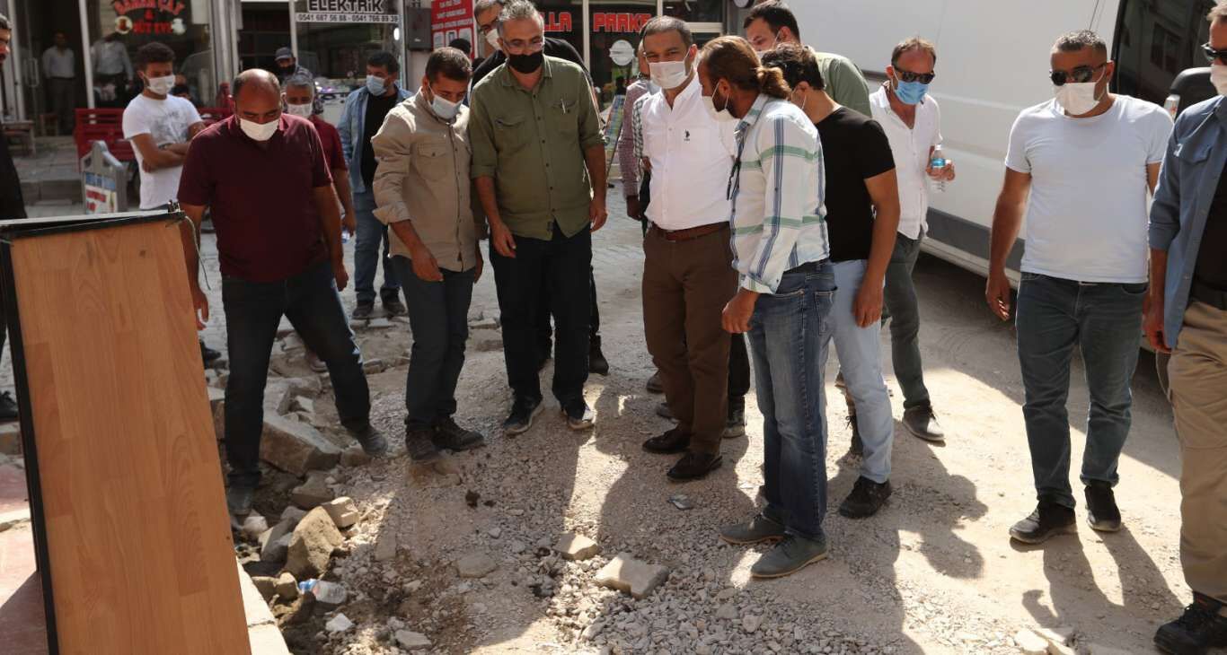 Başkan Vekili Aslan, çalışmaların devam ettiği sokakta incelemelerde bulundu