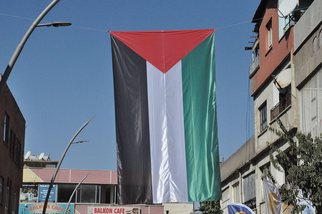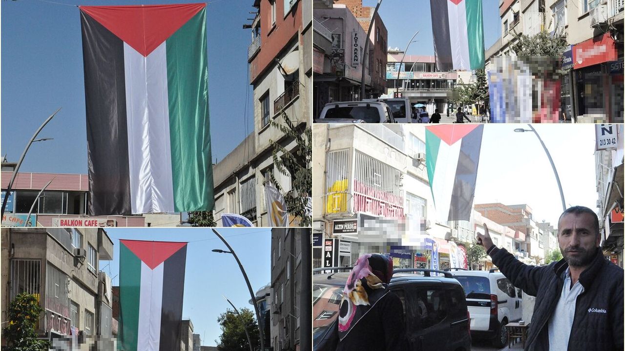 Batman caddelerine dev Filistin bayrağı asıldı