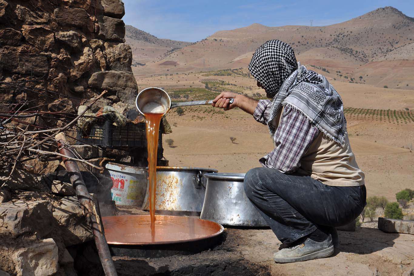 Batman'da kazanlar pekmez yapımı için kaynıyor
