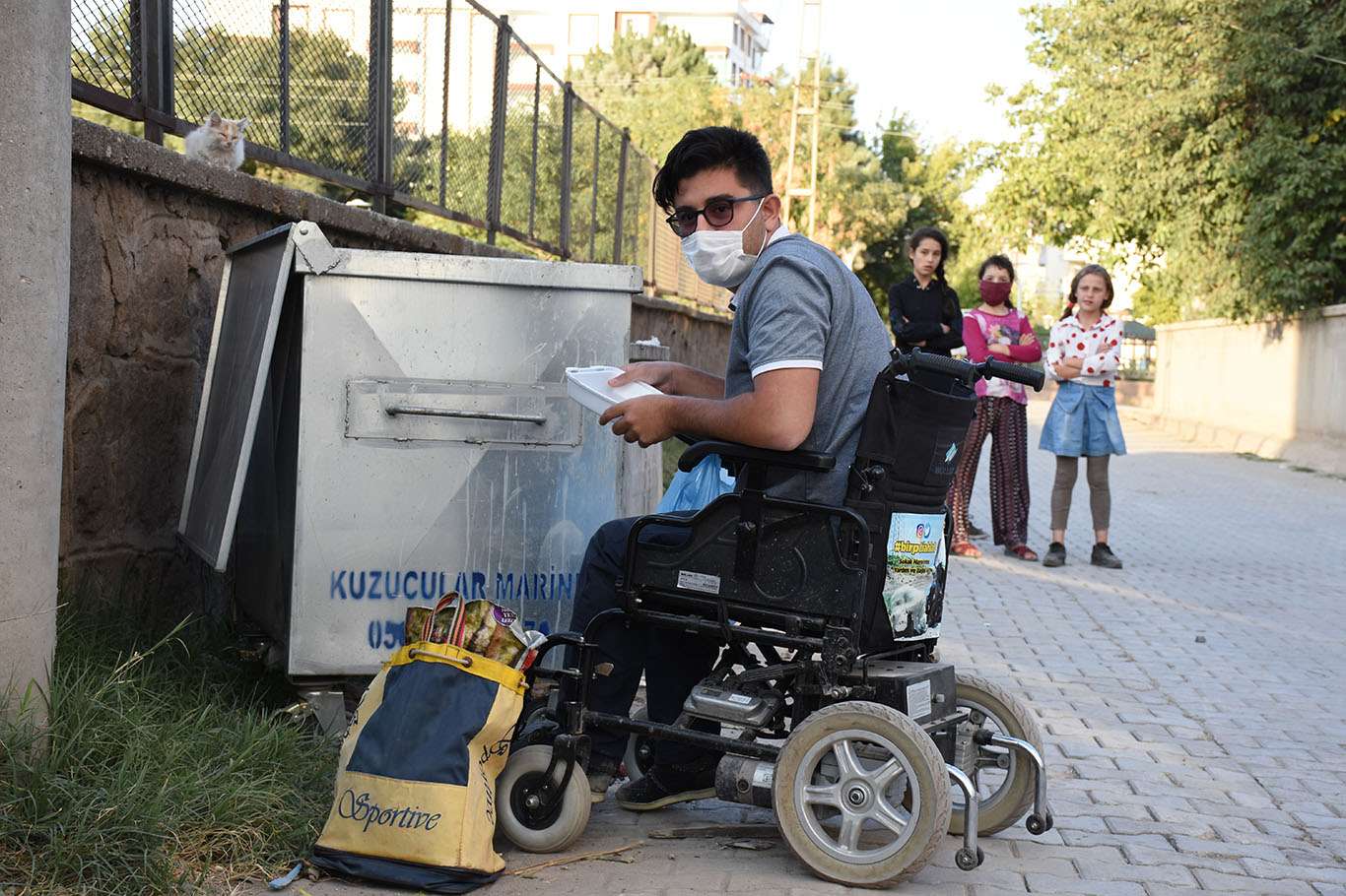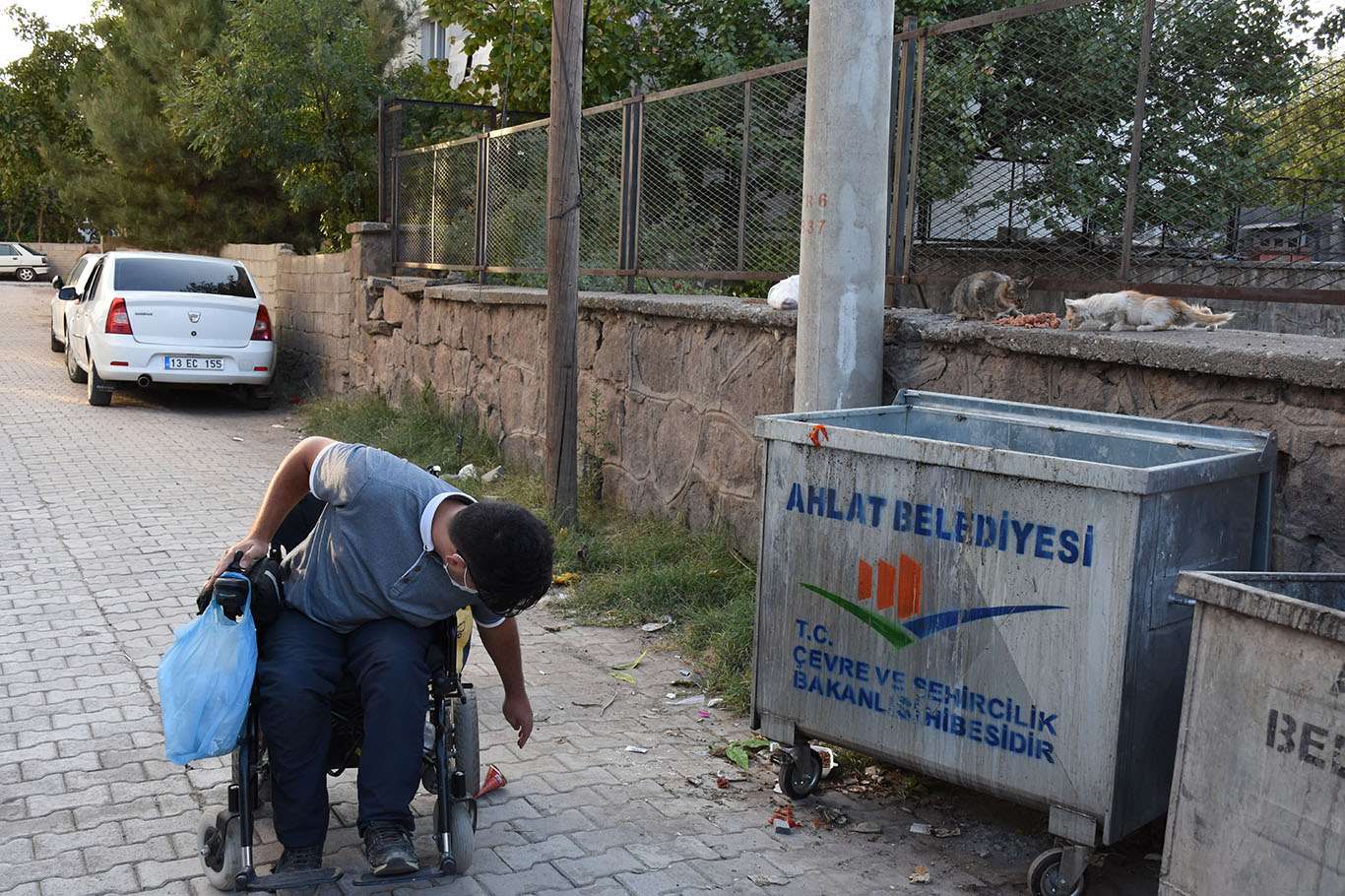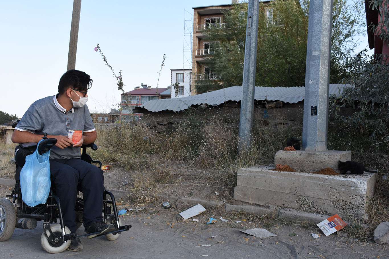 Bedensel engelli genç, akülü aracıyla her gün sokak hayvanlarının karnını doyuruyor