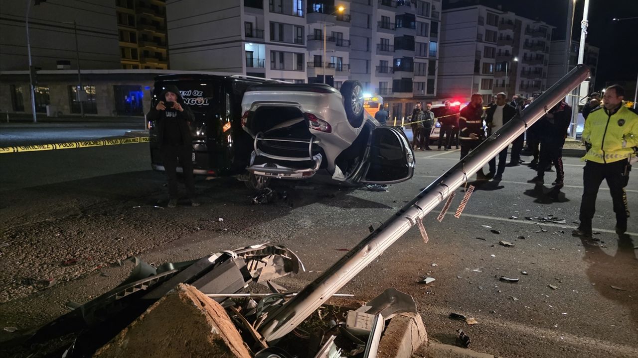 Çarpışmanın etkisiyle otomobil devrildi.
