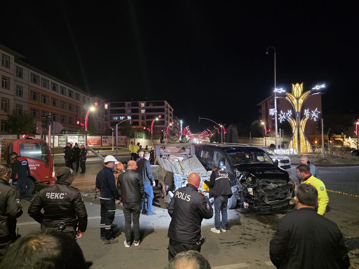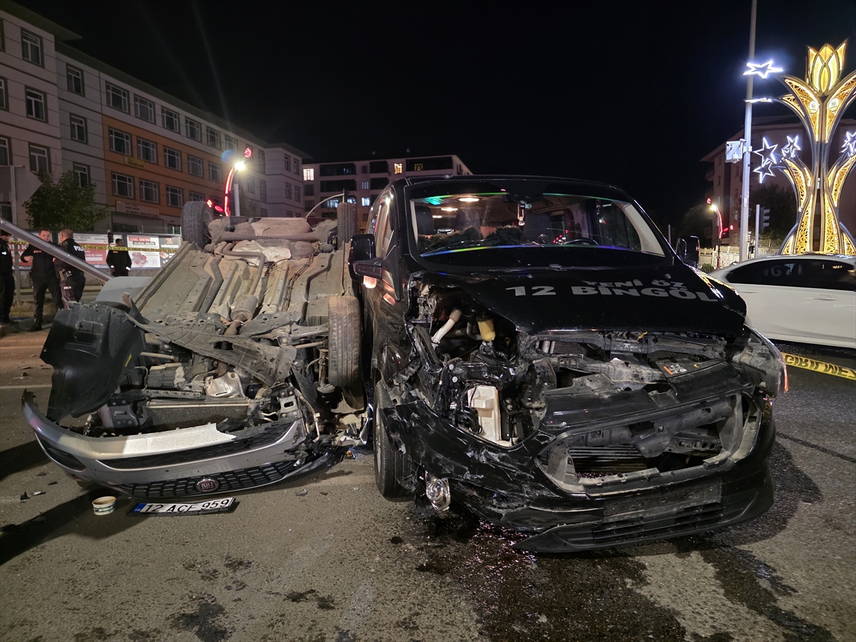 Bingöl'de 4 kişinin yaralandığı trafik kazası sonrası araçlar görüntülendi