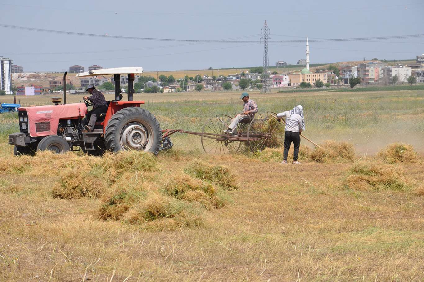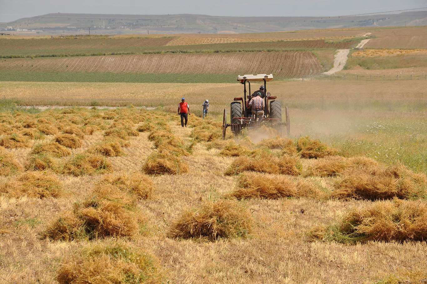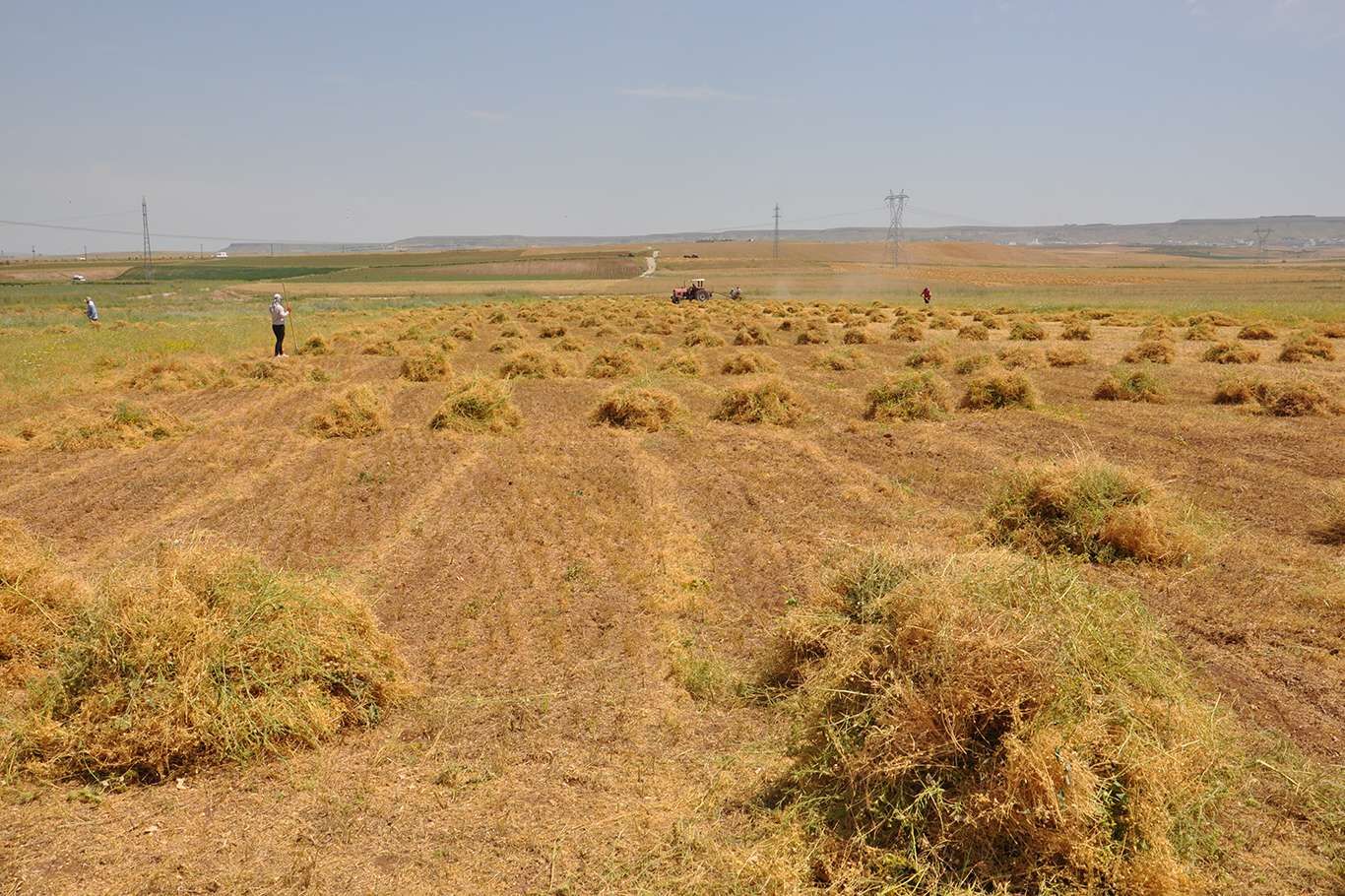 Bunaltıcı sıcaklar altında çiftçilerin mercimek hasadı başladı