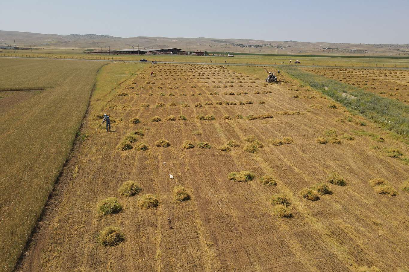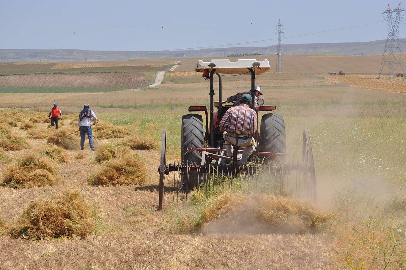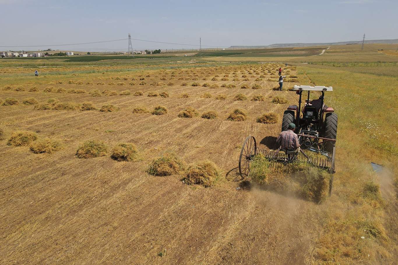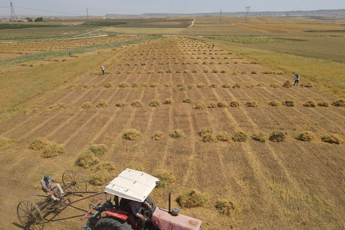 Bunaltıcı sıcaklar altında çiftçilerin mercimek hasadı başladı