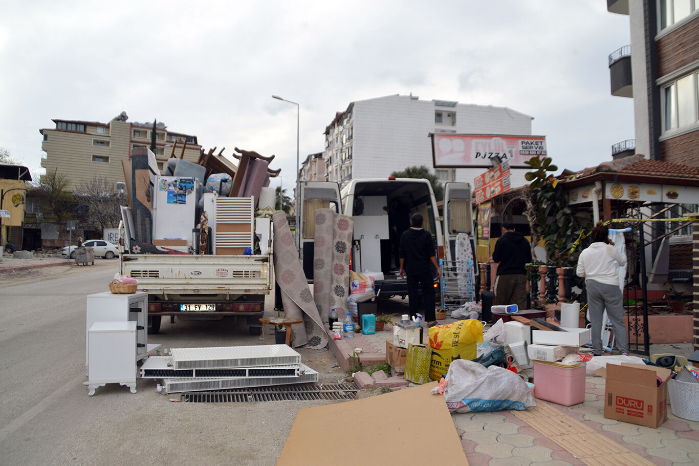 Depremlerin büyük yıkıma yol açtığı Hatay'da insanlar zarar görmemiş ev malzemelerini kurtarma telaşında