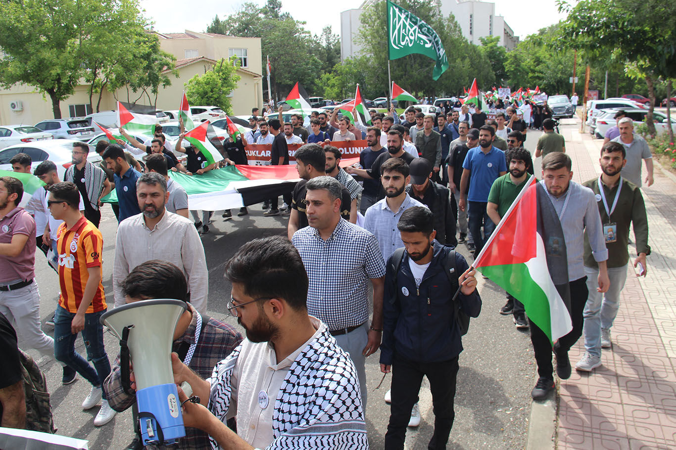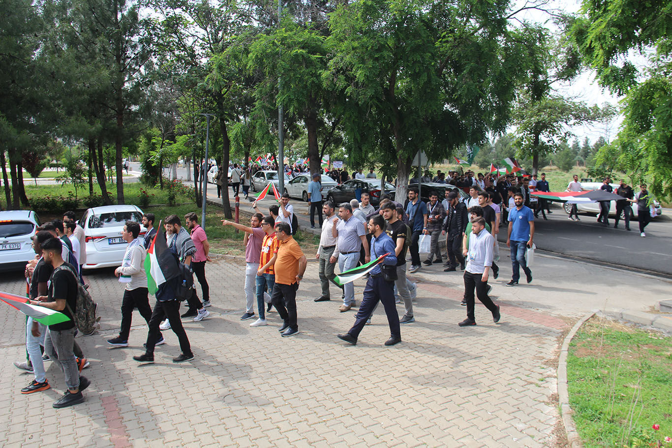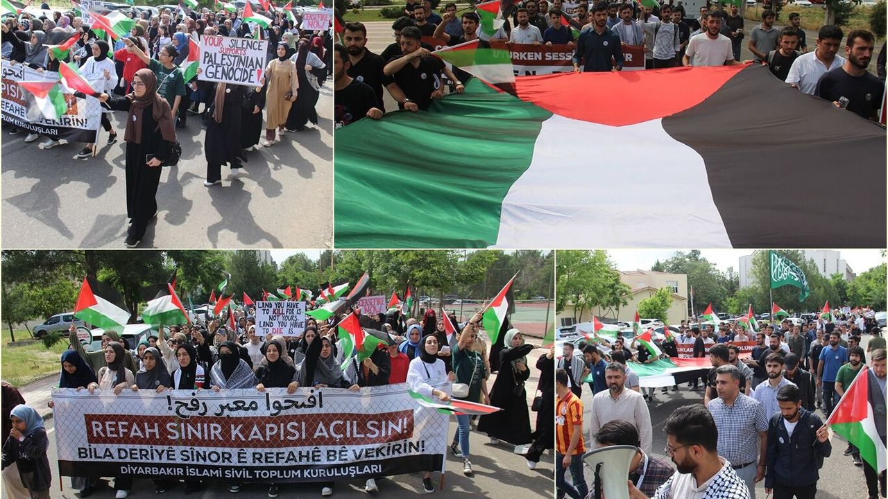 Dicle Üniversitesi öğrencileri Refah'taki saldırıları kınamak için yürüyüş düzenledi