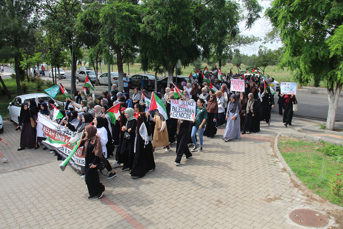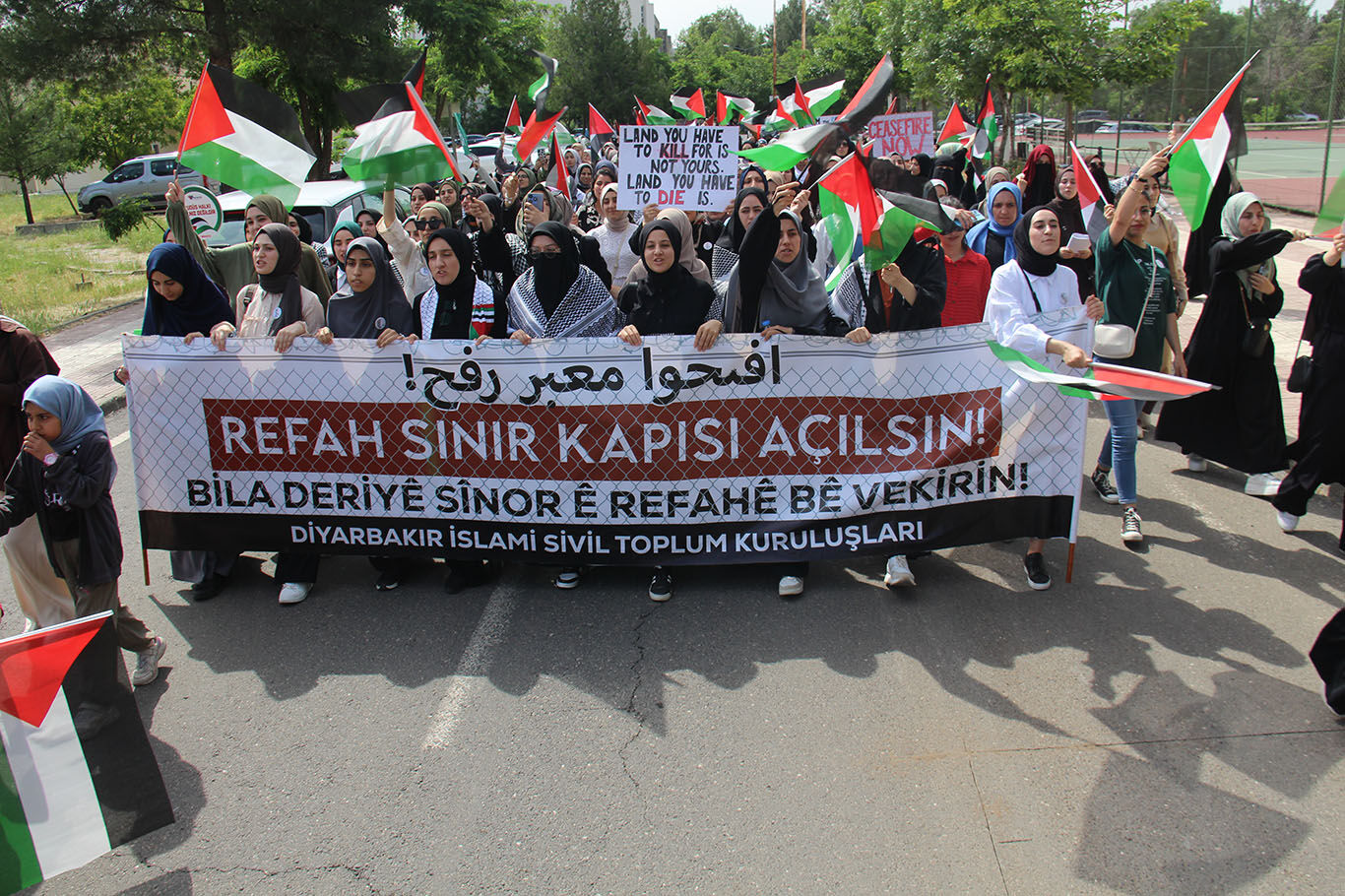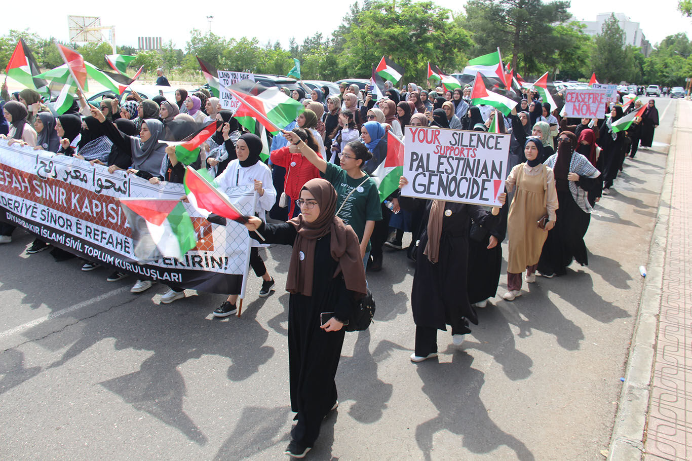 Dicle Üniversitesi öğrencileri Refah'taki saldırıları kınamak için yürüyüş düzenledi