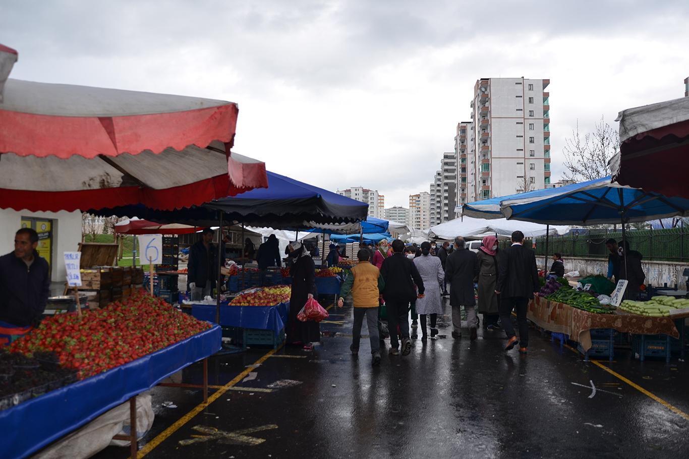 Diyarbakır Pazar esnafı, "sosyal mesafe" kuralına uyuyor