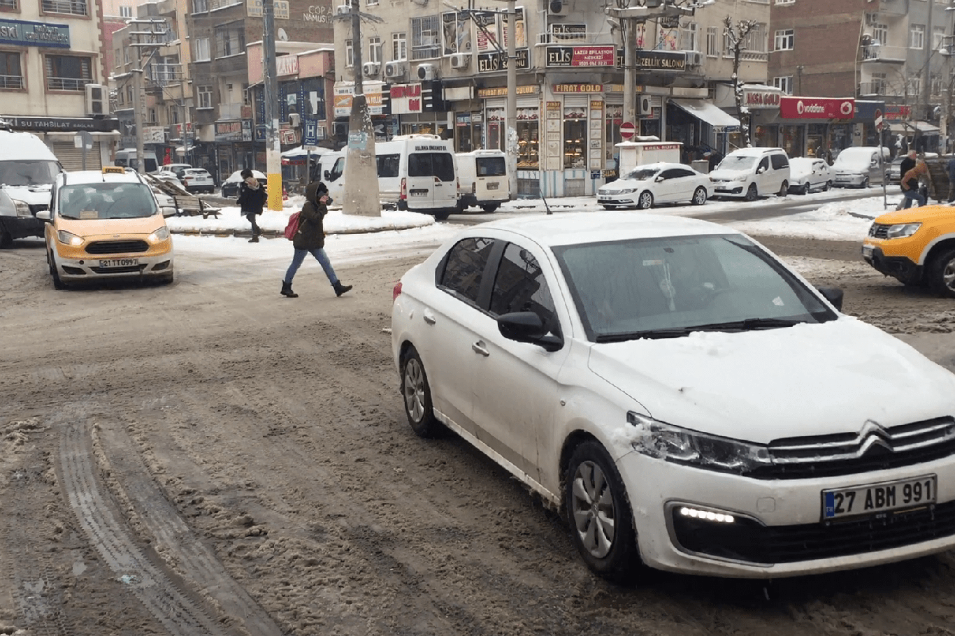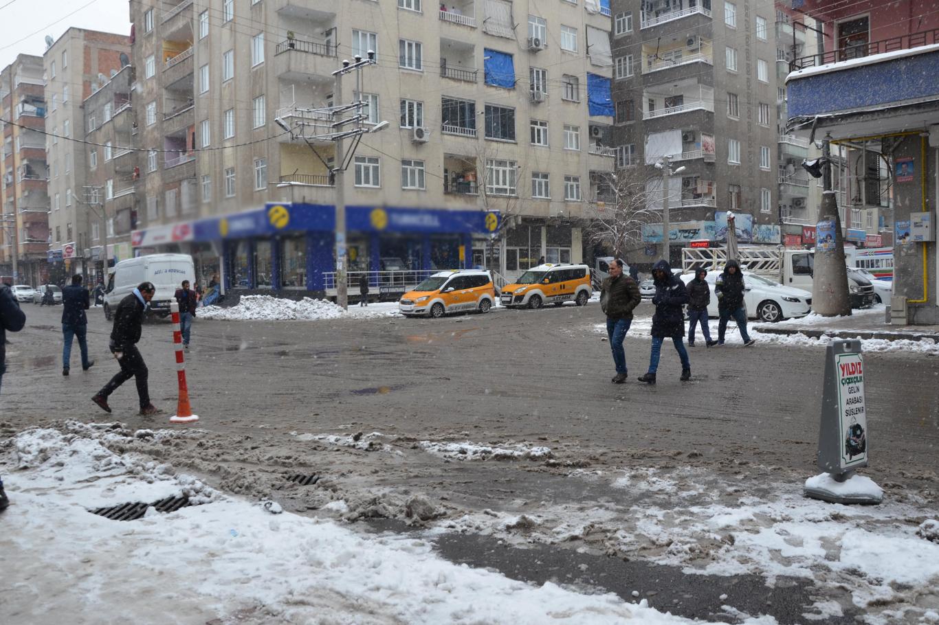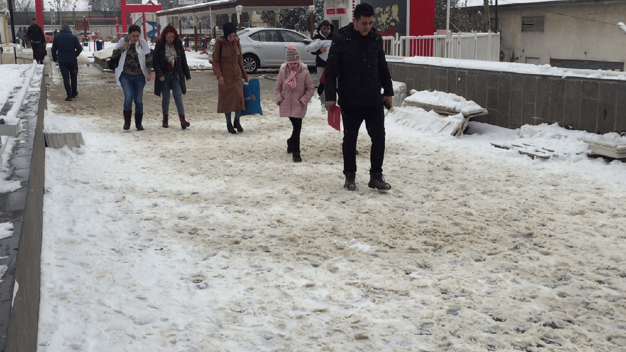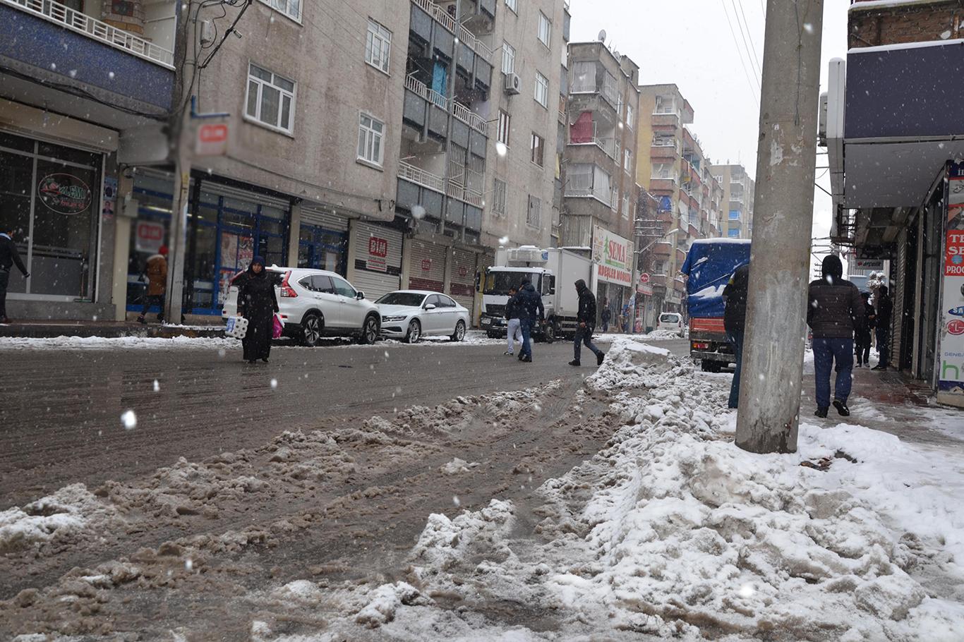 Diyarbakır’da etkili olan kar ve buzlanma özelikle yayaları rahatsız ediyor