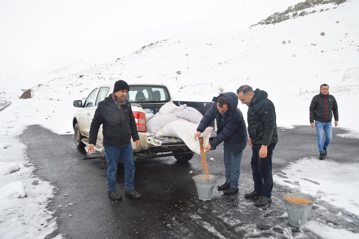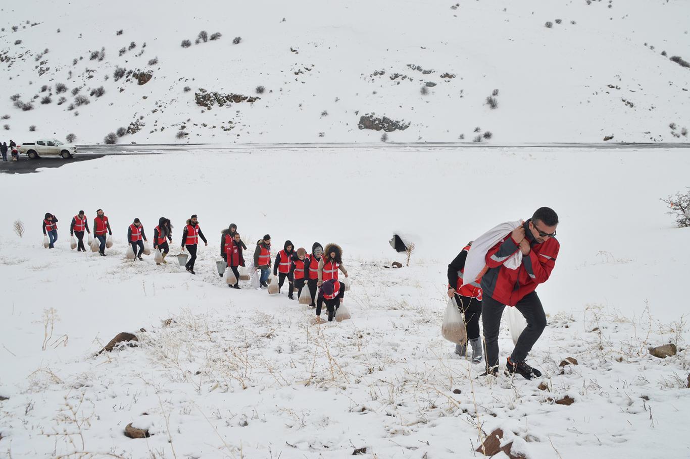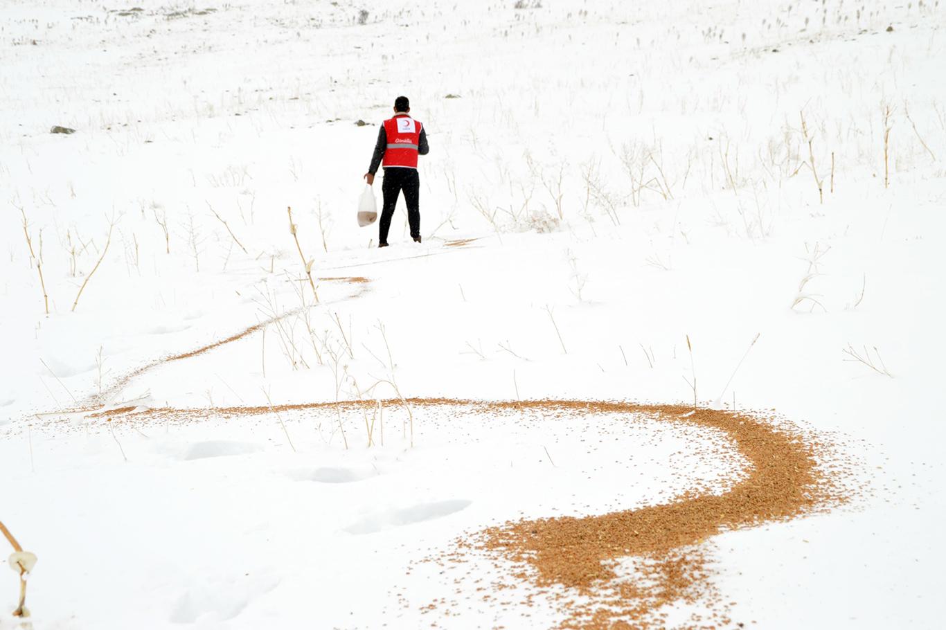 Doğa Koruma İl Müdürlüğü ve Kızılay ekipleri, Ağrı'da doğaya 15 ton yem bıraktı
