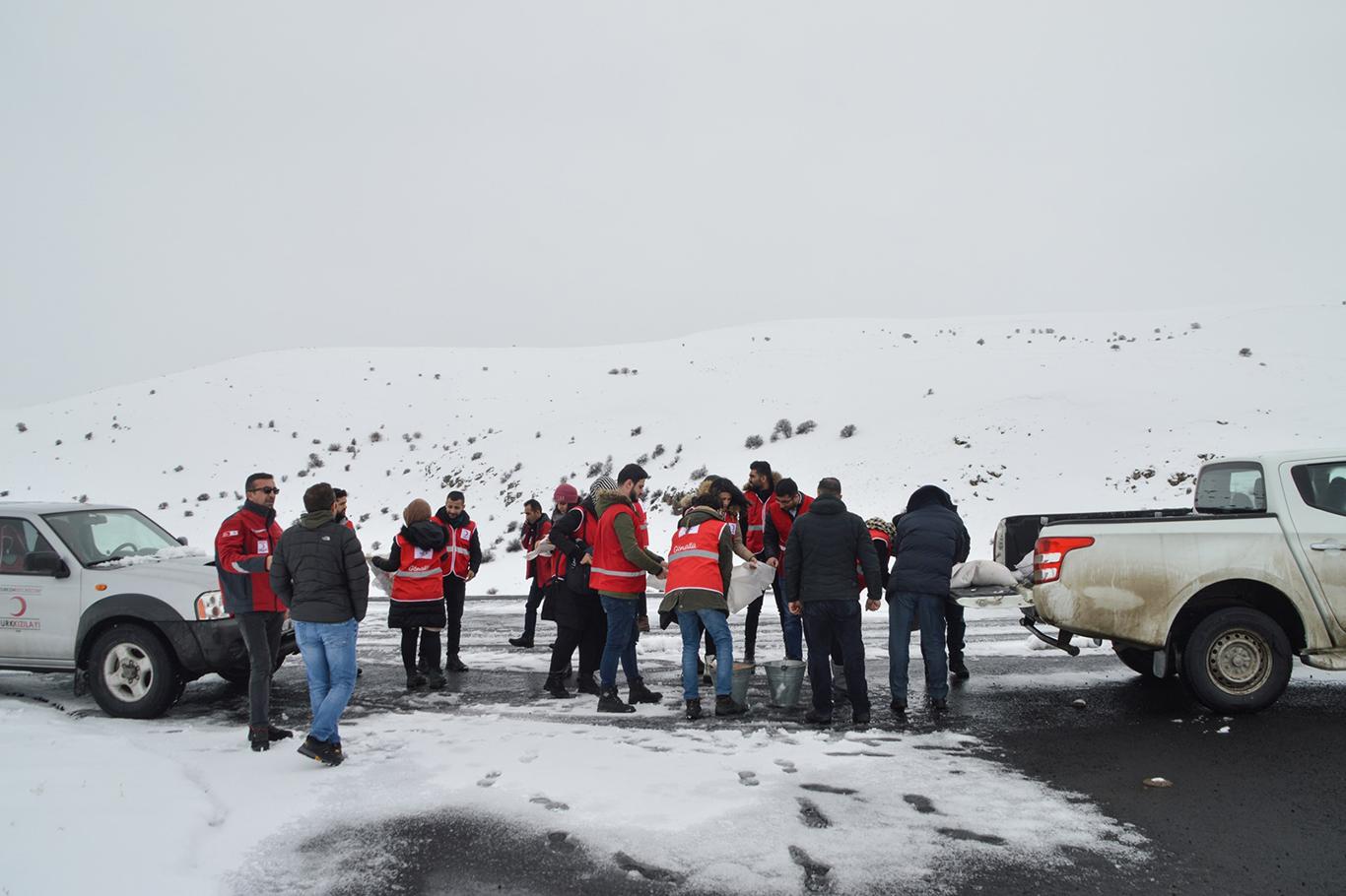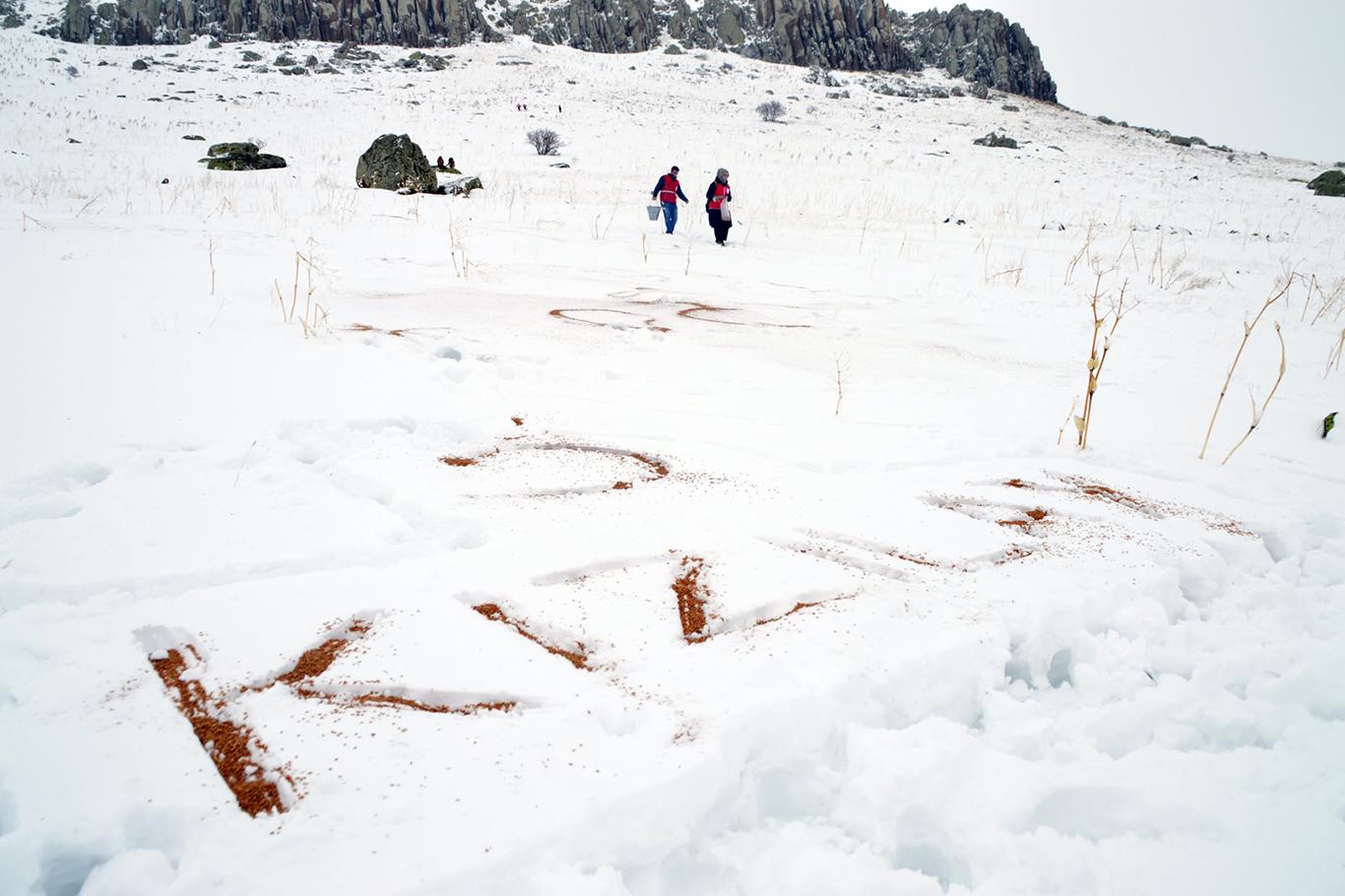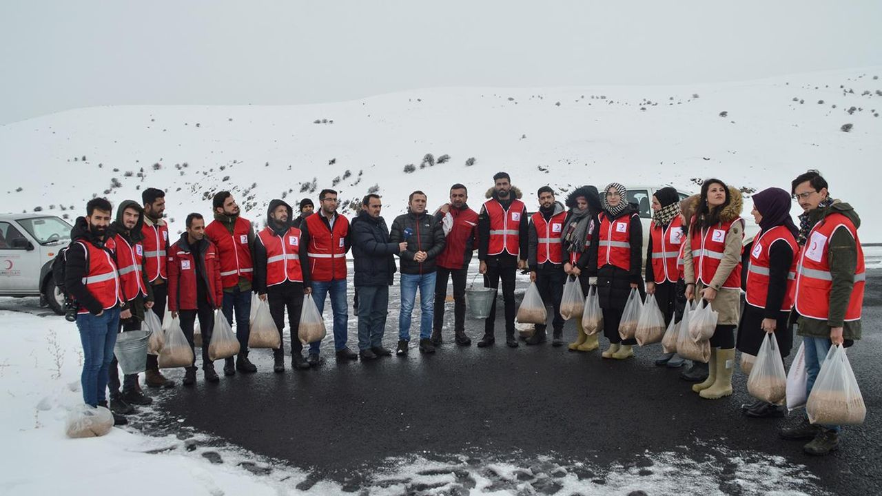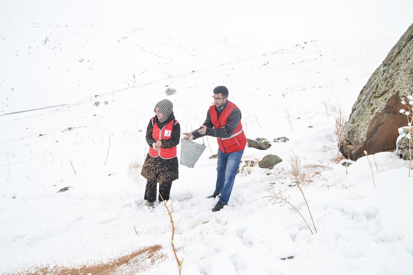 Doğa Koruma İl Müdürlüğü ve Kızılay ekipleri, Ağrı'da doğaya 15 ton yem bıraktı