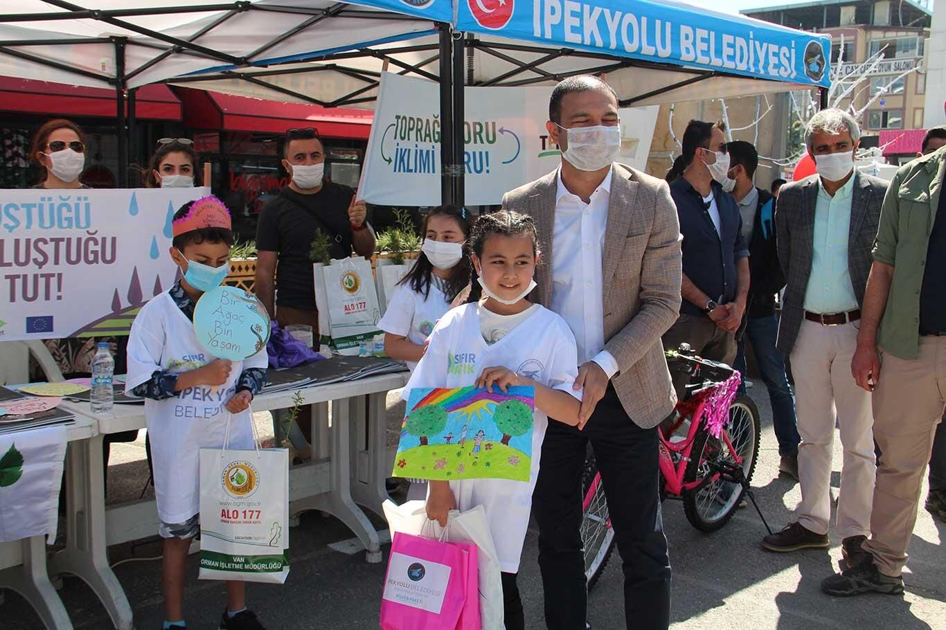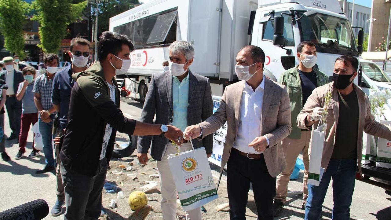 Dünya Çevre Gününde Van'da ilginç atıklar sergilenerek halka fidan dağıtıldı