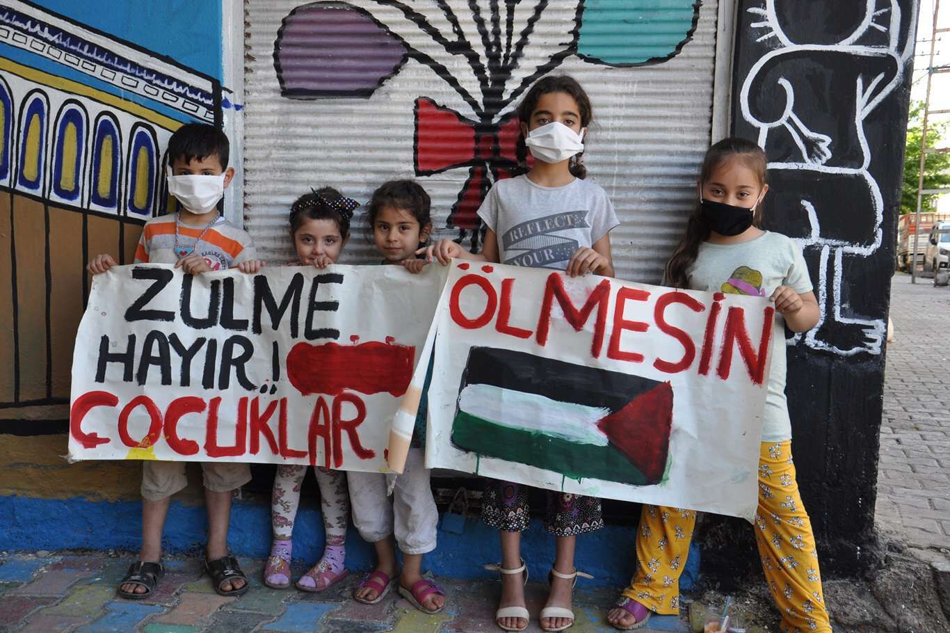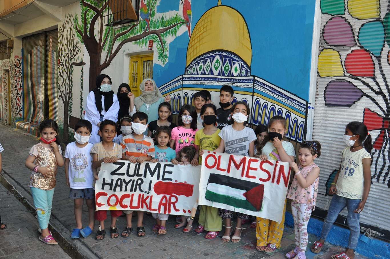 Filistin’e destek için sokak duvarına Kubbet-üs Sahra resmini çizdiler