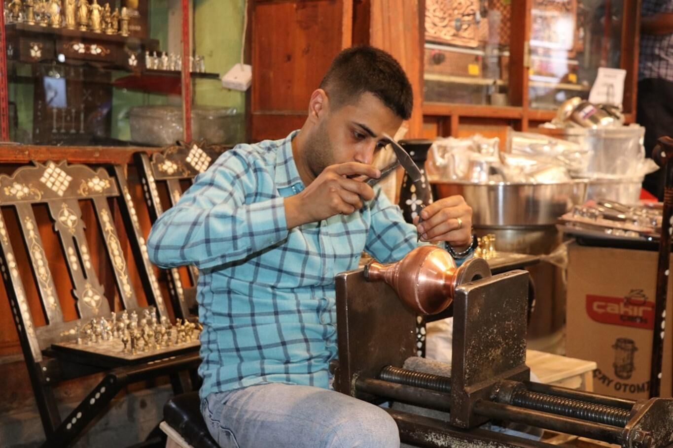 Gaziantep’in tarihi Bakırcılar Çarşısı’nda çekiç sesleri yeniden yükseldi