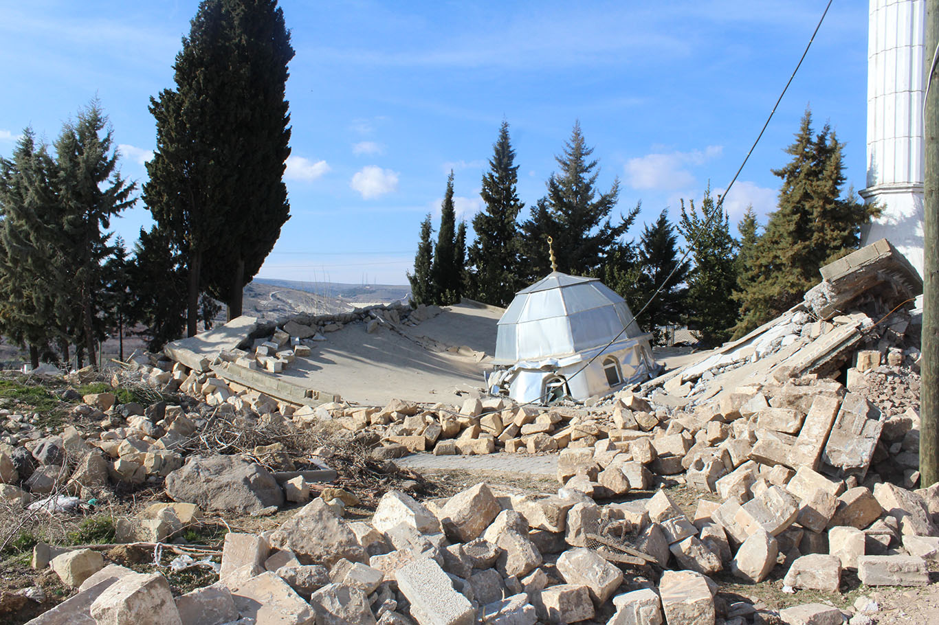 Gaziantep’te cami yıkıldı minaresi ayakta kaldı