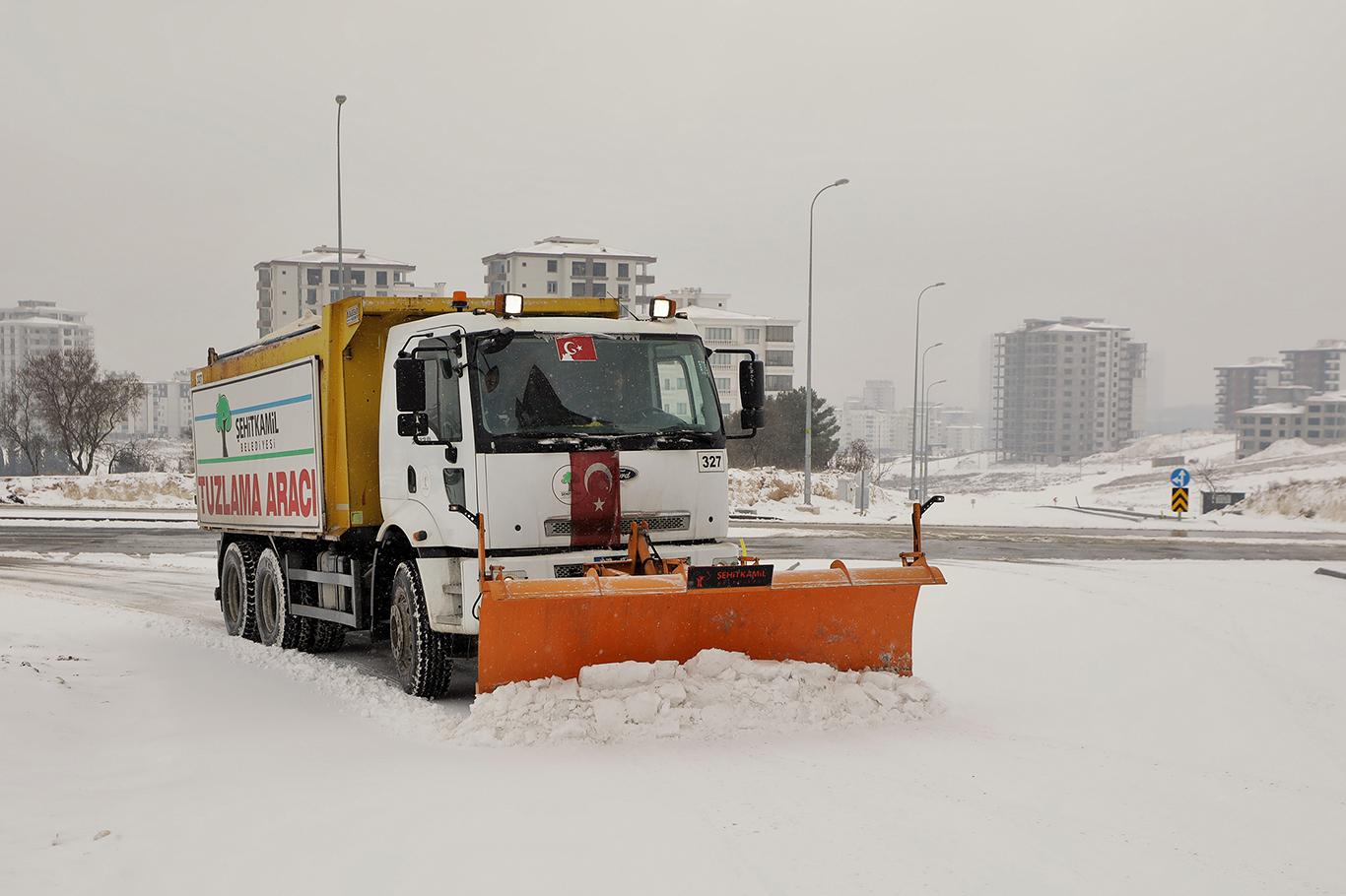 Gaziantep’te kar ile mücadele çalışması aralıksız devam ediyor