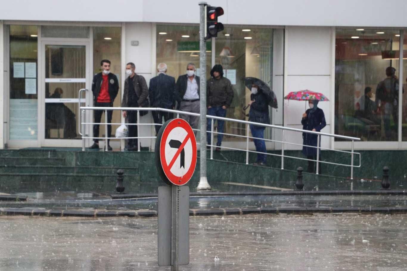 Gaziantep'te "sosyal mesafe" kuralı şiddetli yağmur engeline takıldı