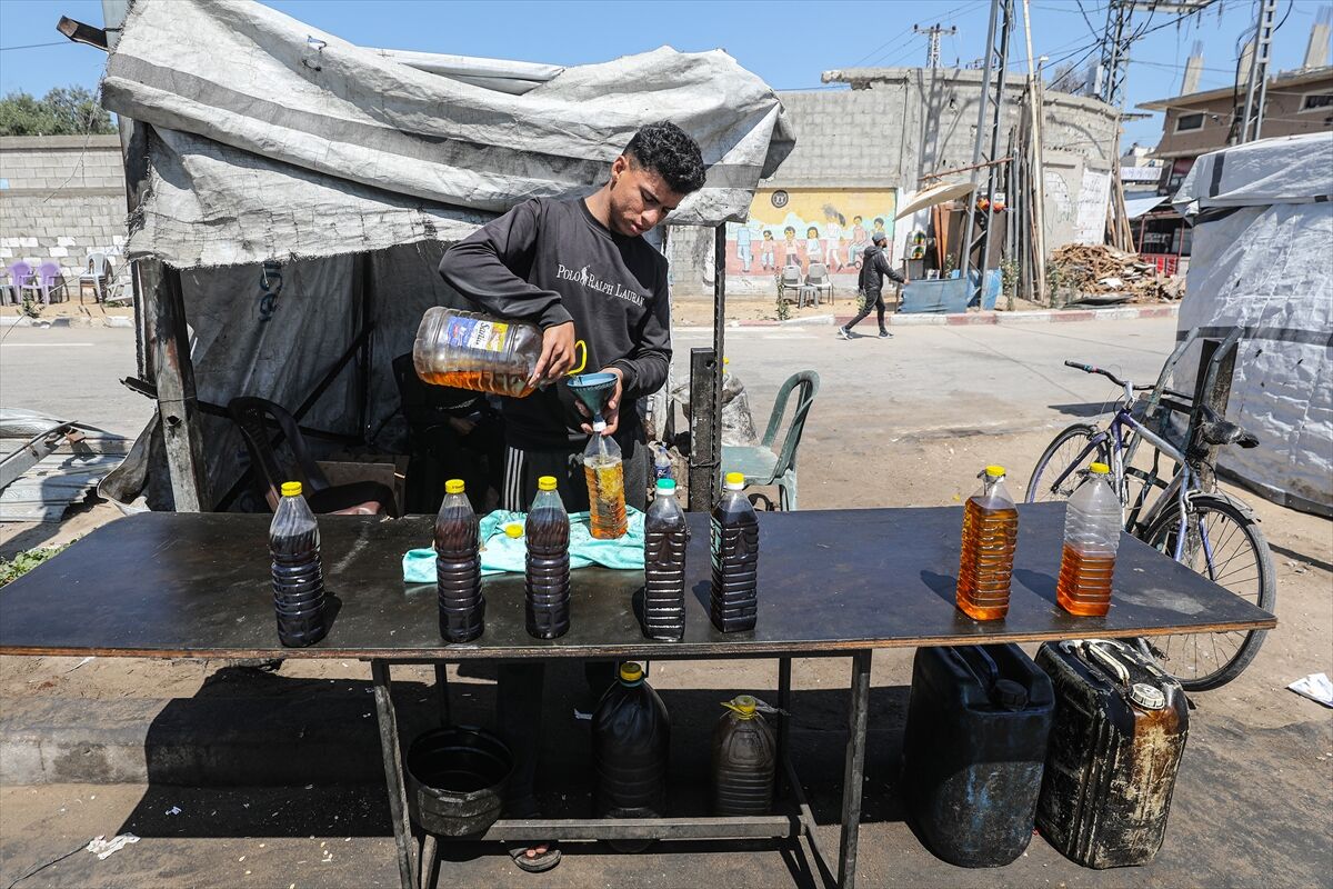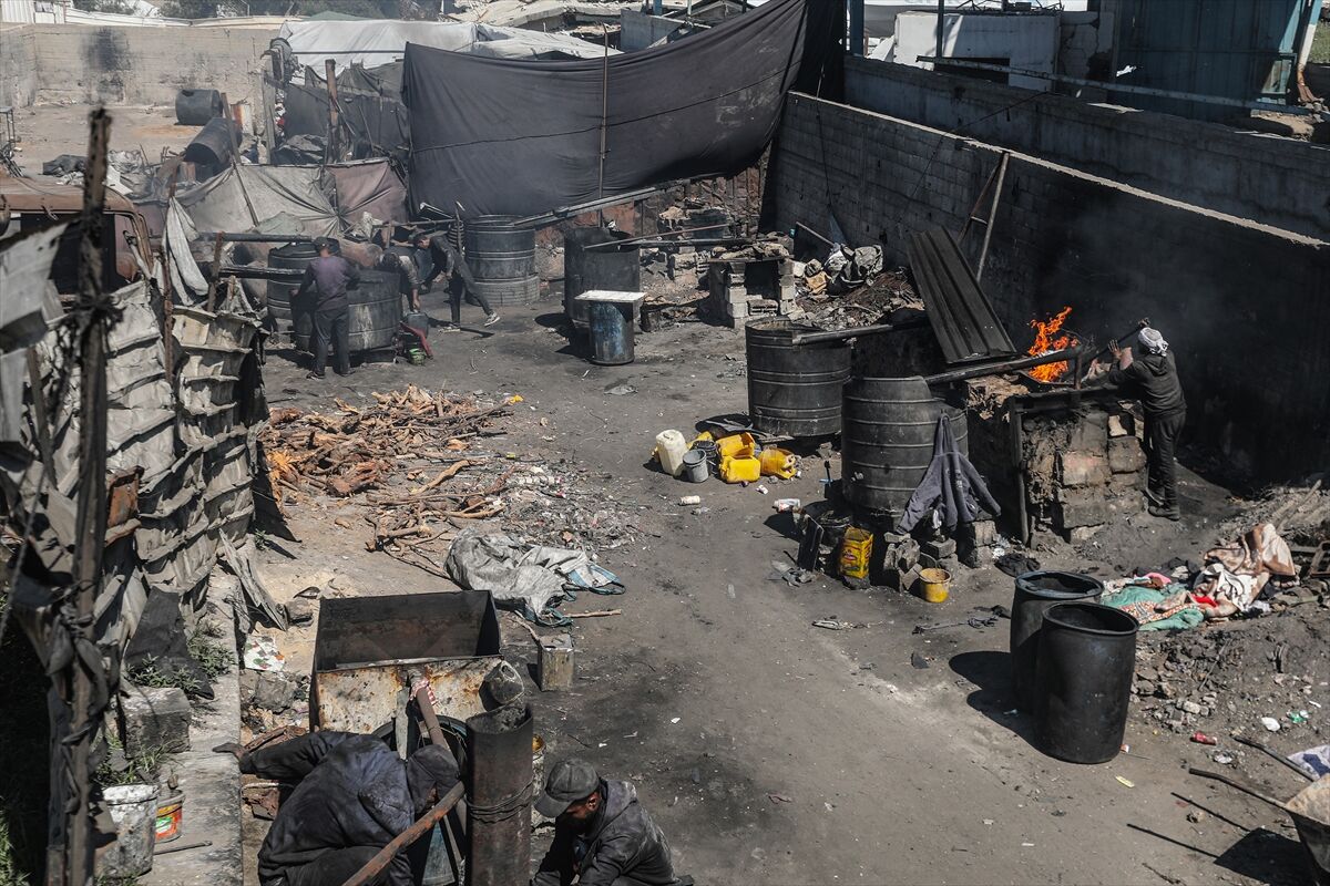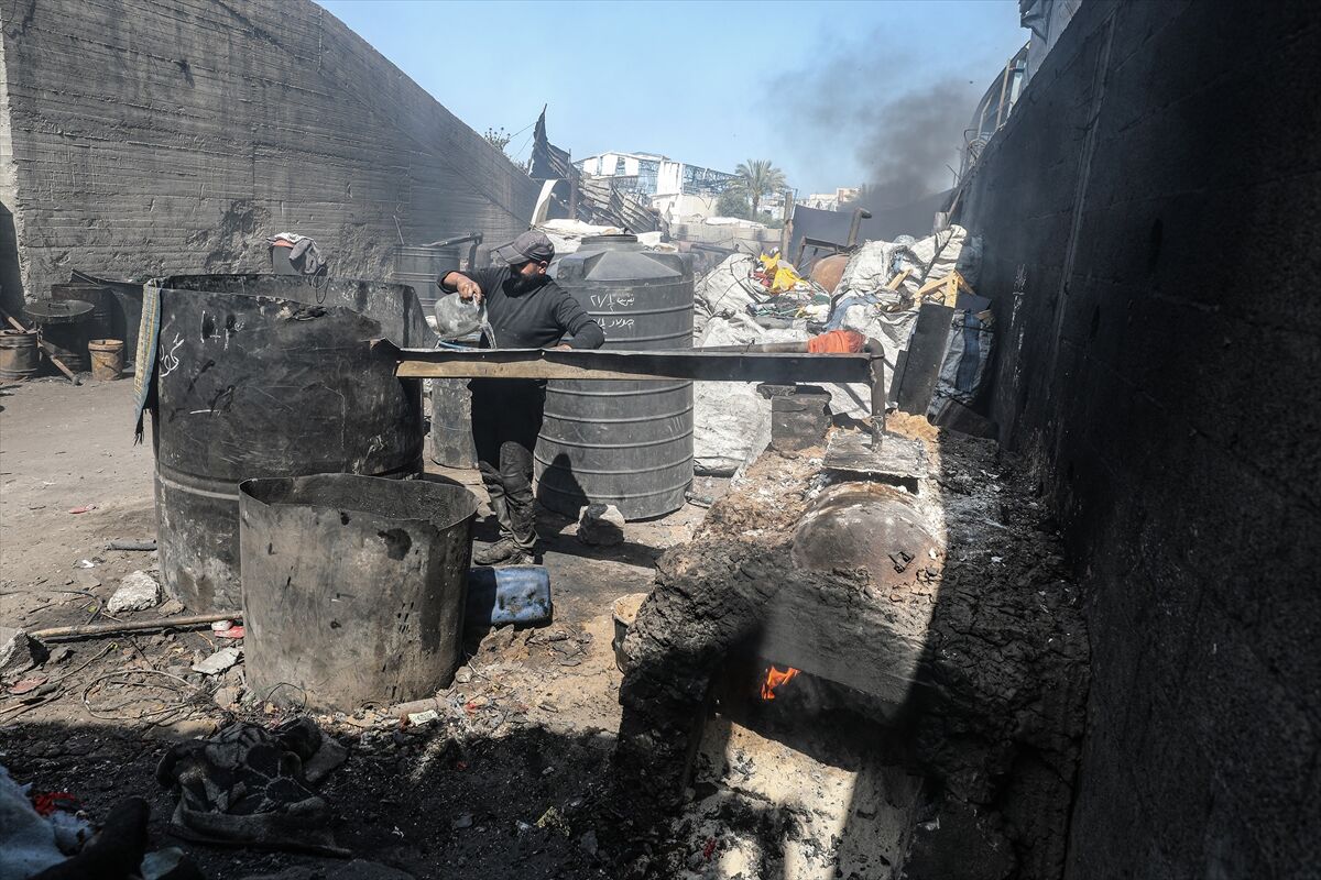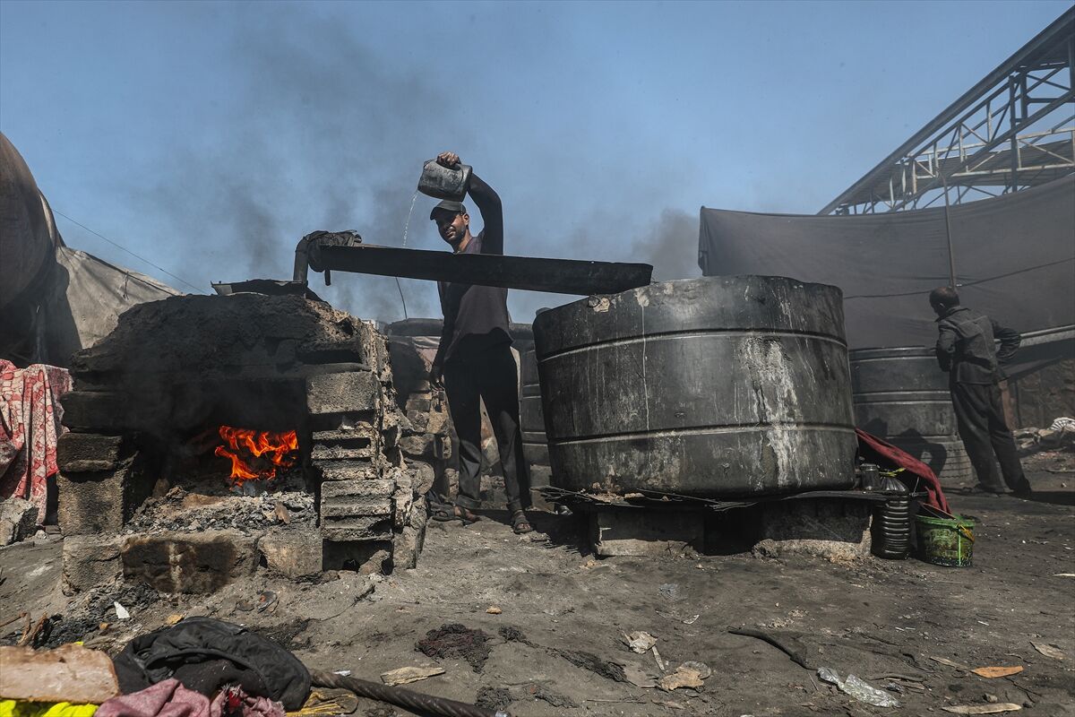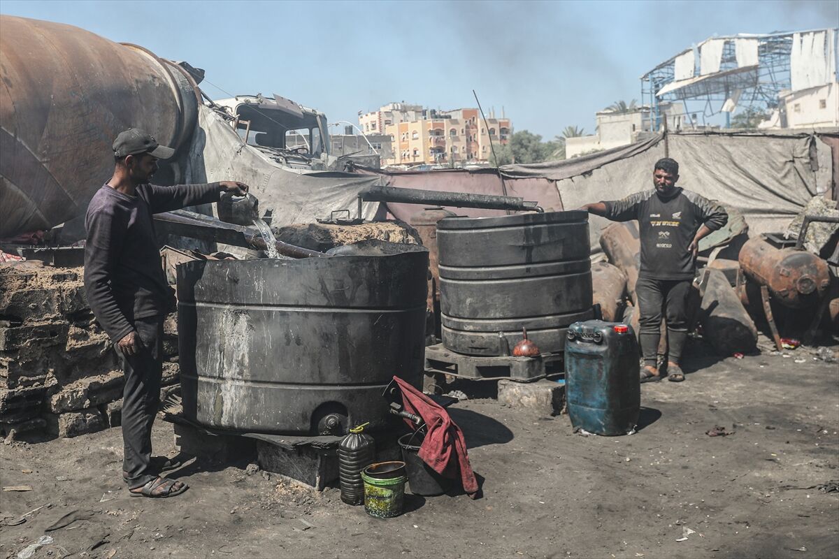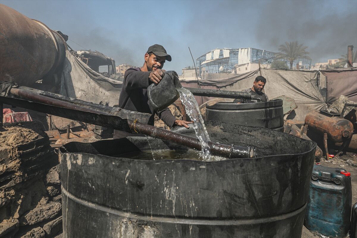 Sağlanan ateşkese rağmen işgalcilerin bölgeye yeterli miktarda yakıt girişine izin vermemesi nedeniyle Gazze Şeridi’nin orta kesimindeki Deyr el-Belah kentinde yaşayan Filistinliler, temel ihtiyaçlarını karşılayabilmek için ilkel yöntemlerle yakıt üretimine yöneliyor.