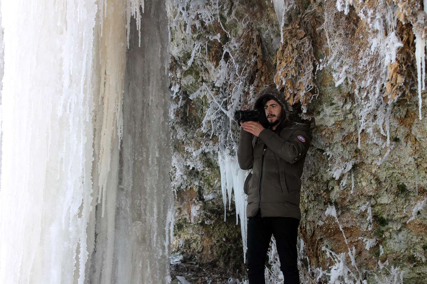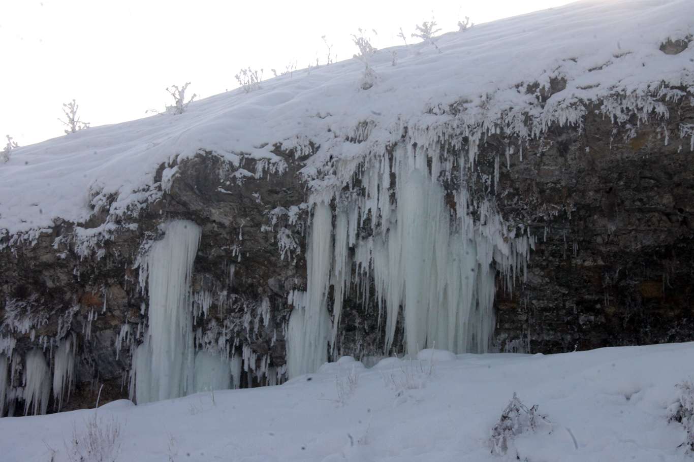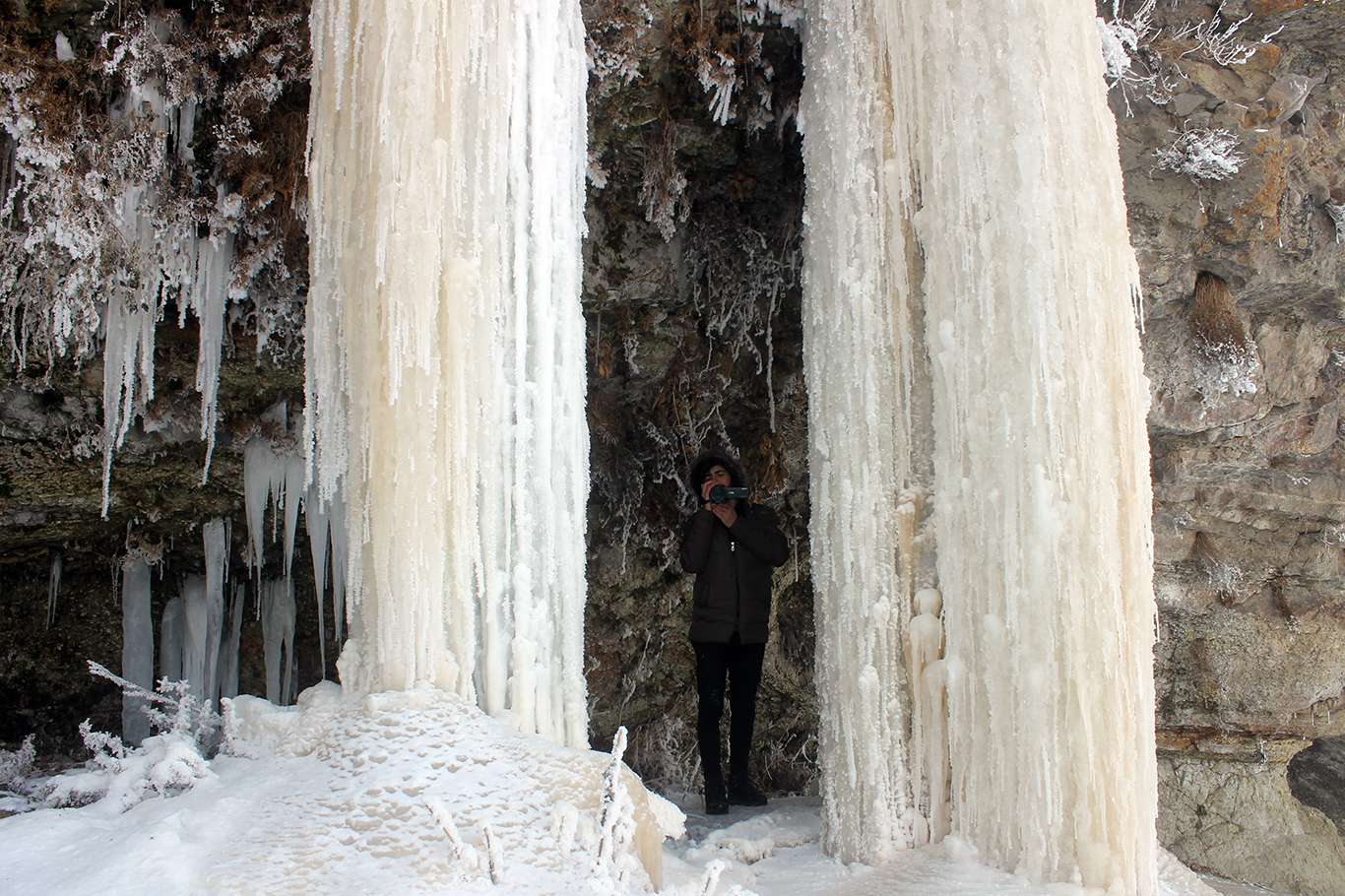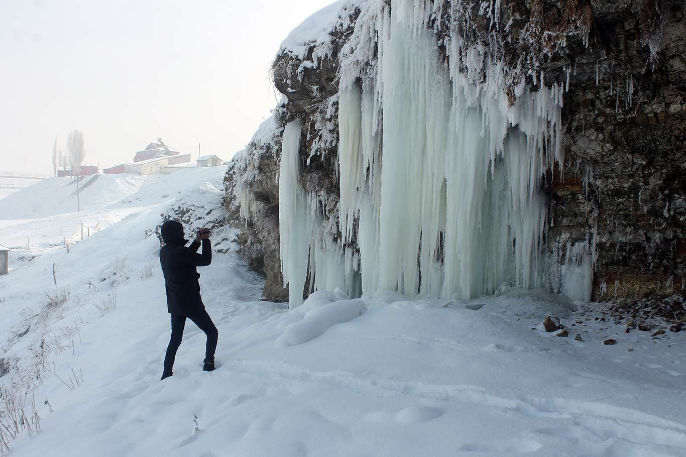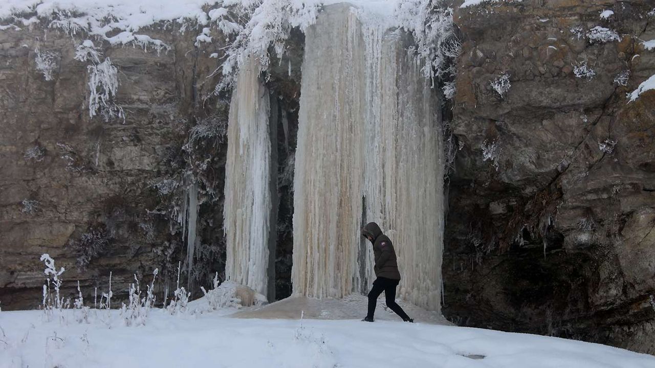 Gece termometrelerin eksi 26 gösterdiği Ağrı'da 5 metrelik buz sarkıtları oluştu