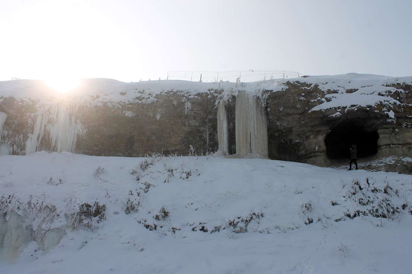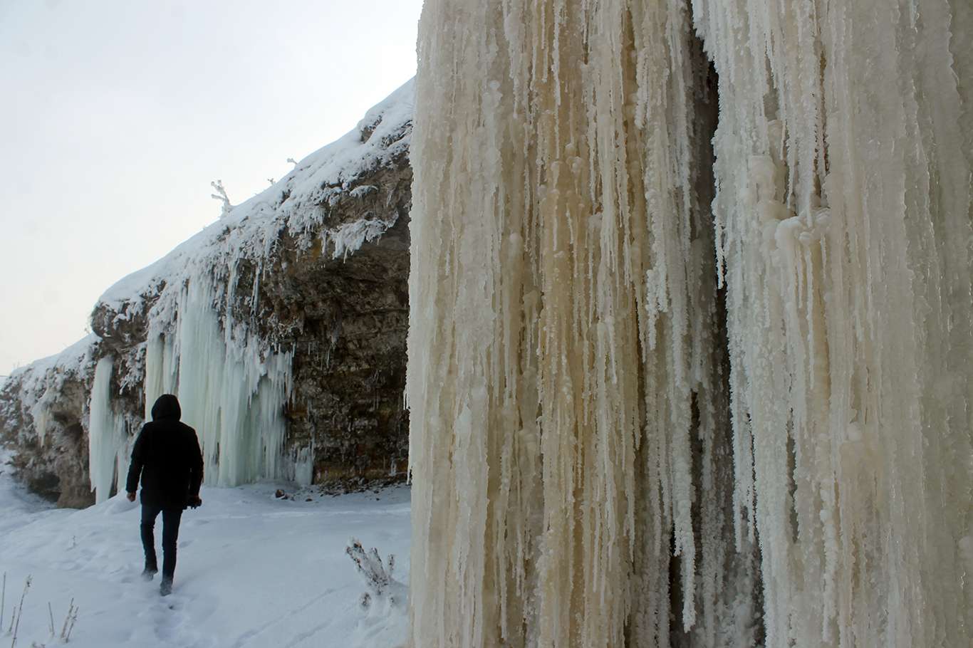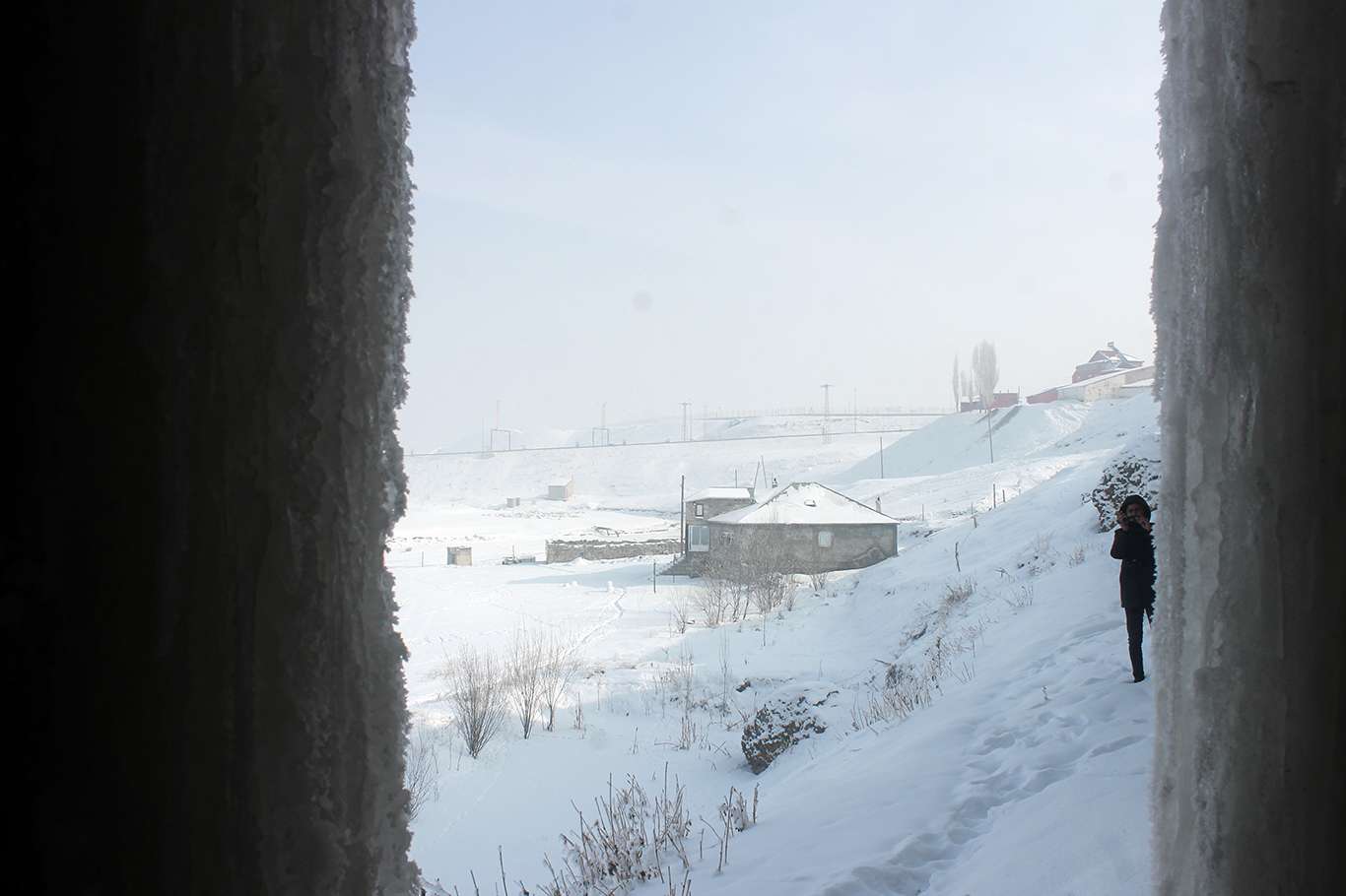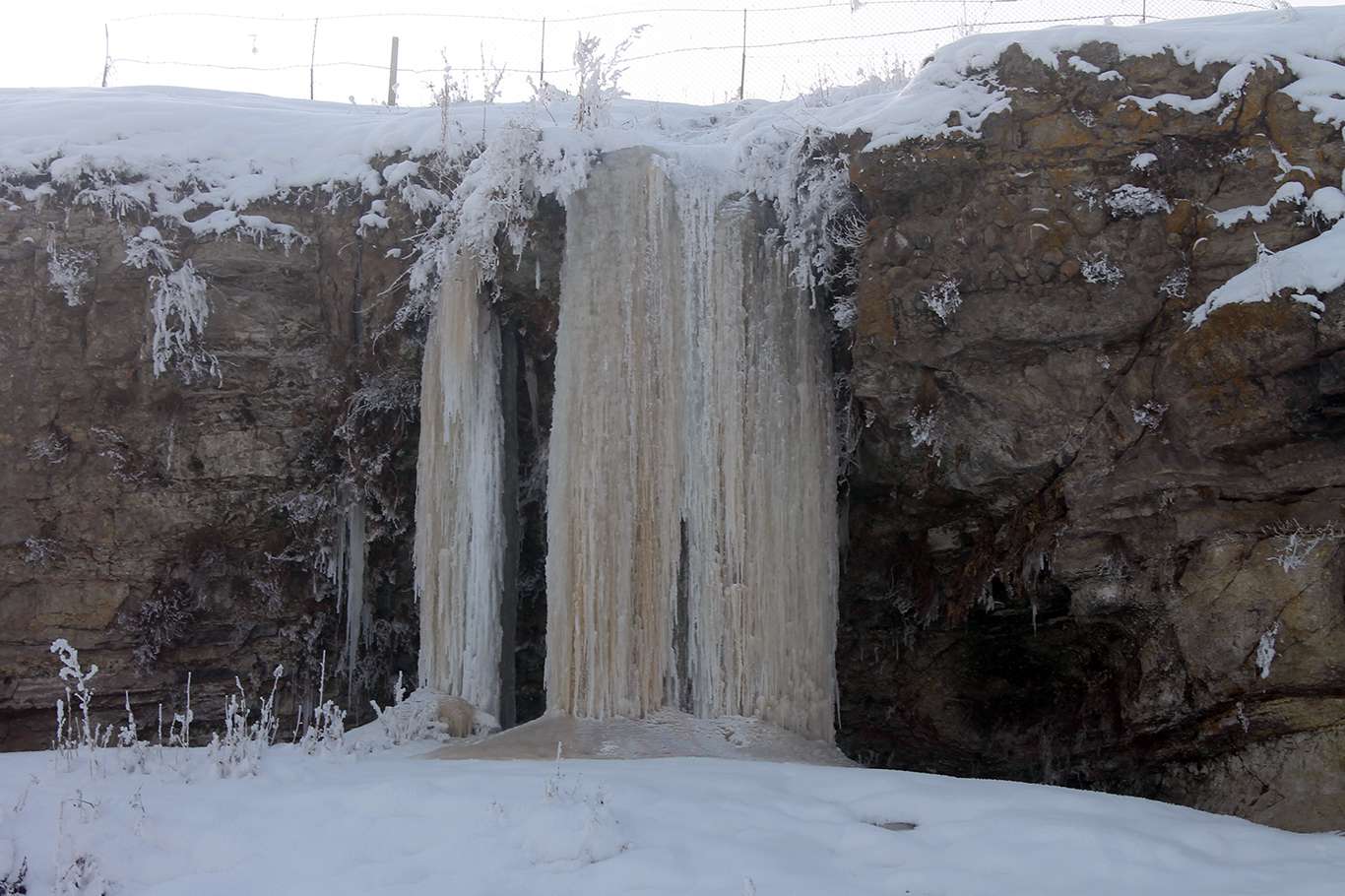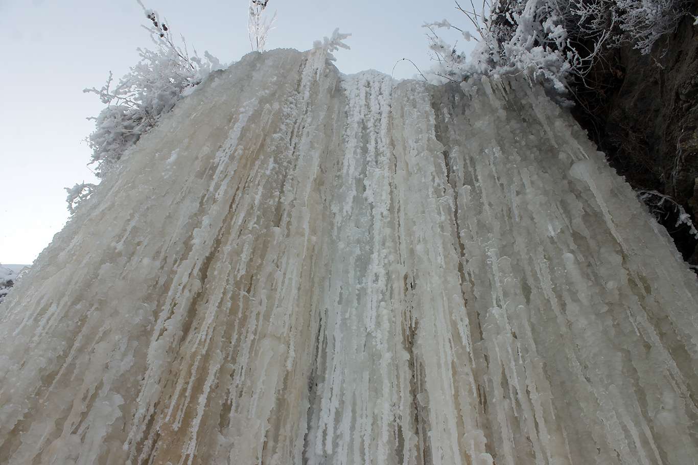 Gece termometrelerin eksi 26 gösterdiği Ağrı'da 5 metrelik buz sarkıtları oluştu