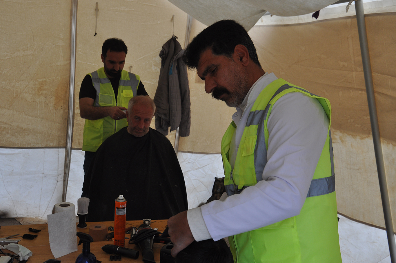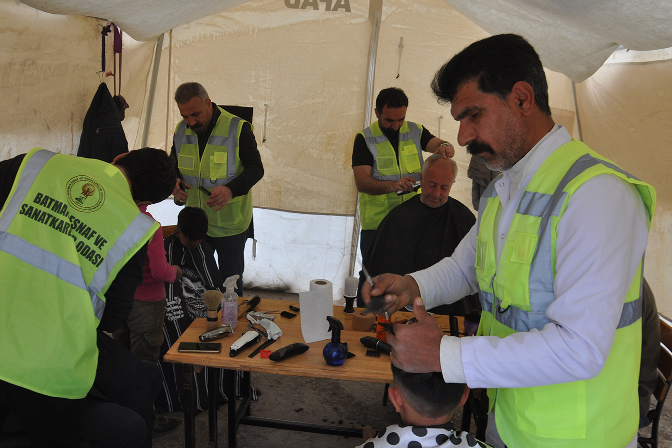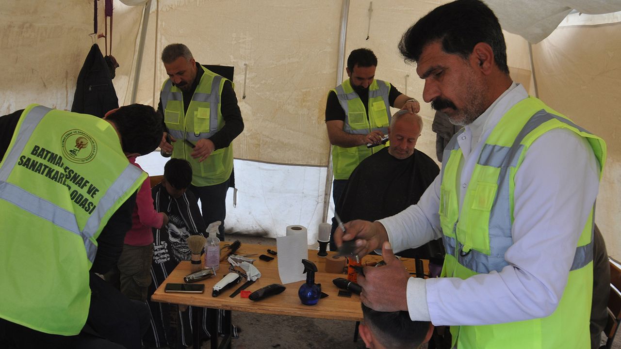Gönüllü berberler depremzedeleri ücretsiz tıraş ediyor