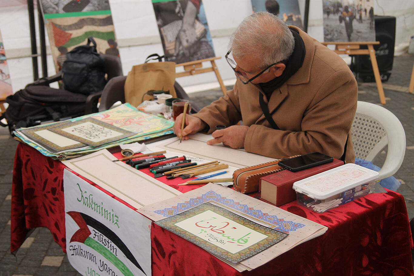 Hattatlar kalemlerini Filistin için kullanıyor