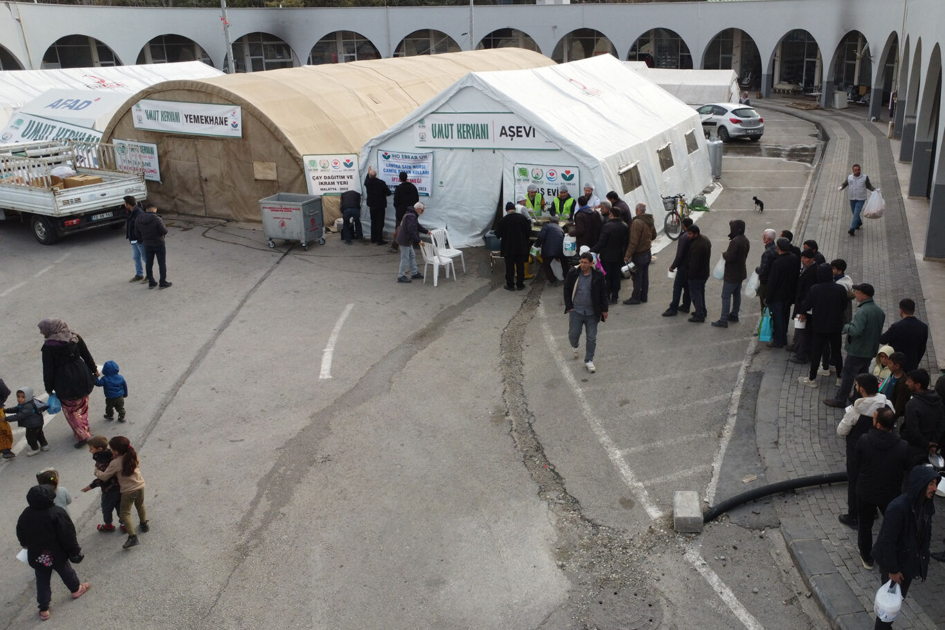 Hayırseverlerin Umut Kervanı aracılığıyla depremzedelere iftar yemeği ikramı sürüyor