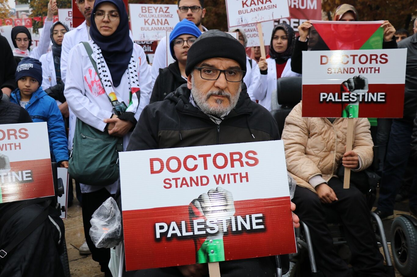 Hekimlerden ve engellilerden Gazze'deki soykırıma "sessiz" tepki