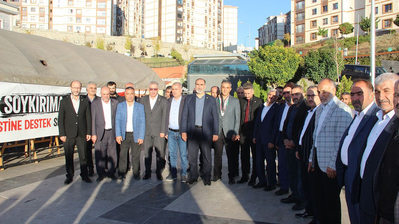 HÜDA PAR heyeti "Filistin Dayanışma Çadırı"nı ziyaret etti