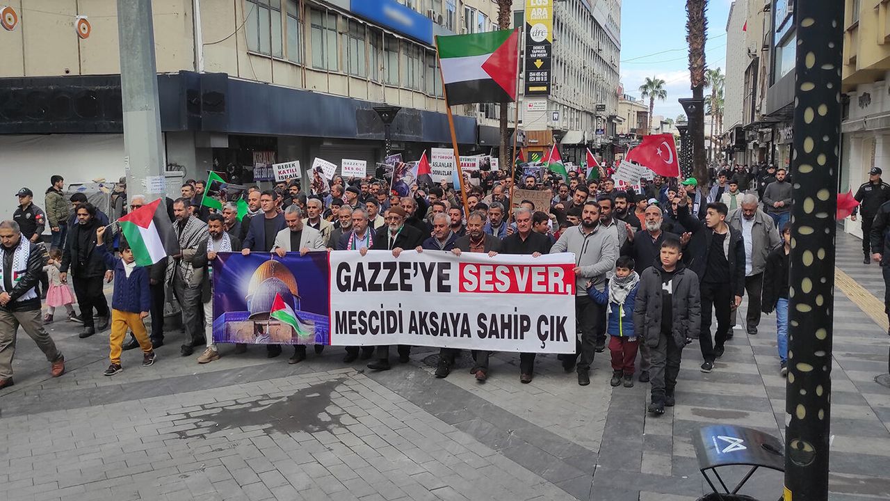 HÜDA PAR'dan Mersin'de Gazze'ye destek yürüyüşü