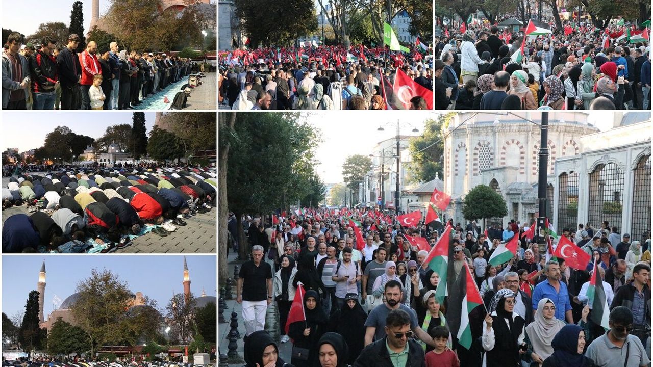 İstanbul'da on binler Gazze'ye destek için yürüdü