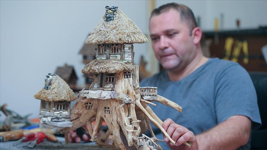 İşte 'beton binalar', evde 'ahşap maketler' yapıyor