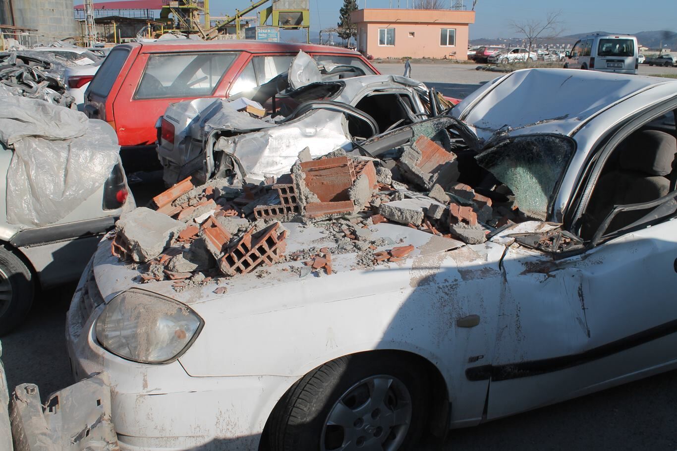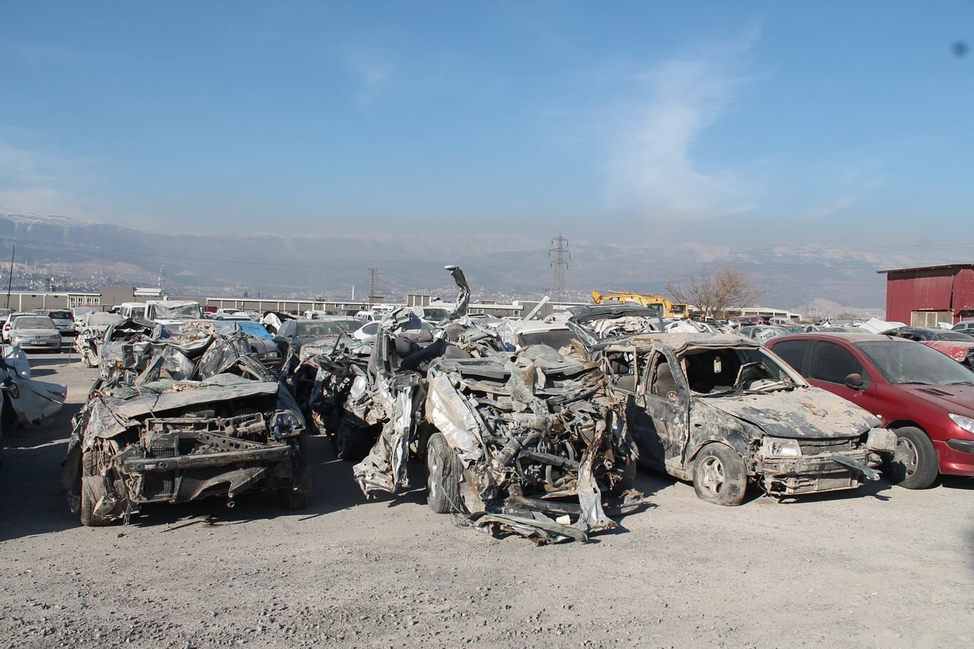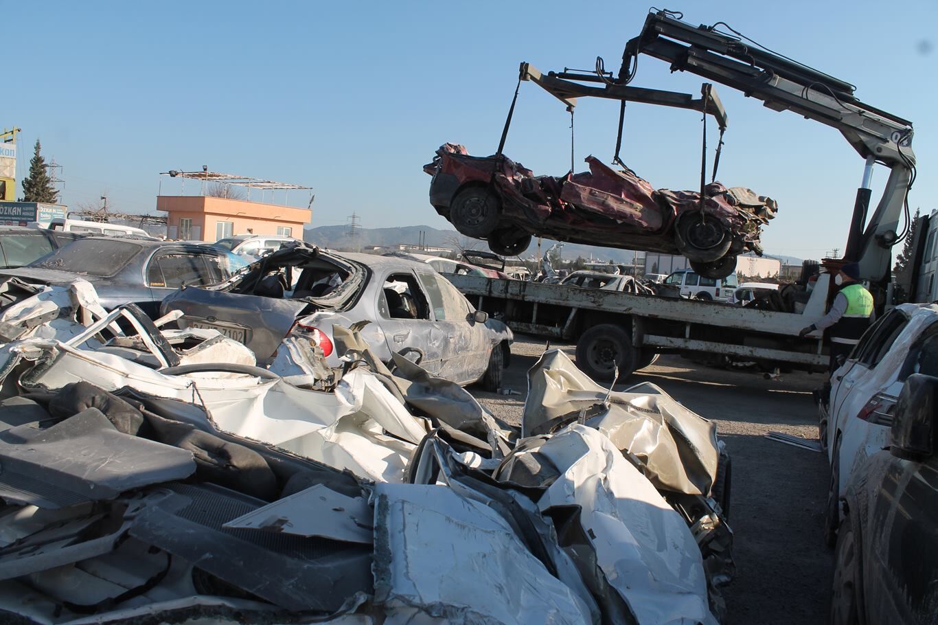 Kahramanmaraş'ta depremde hasar gören araçlar otoparka çekiliyor