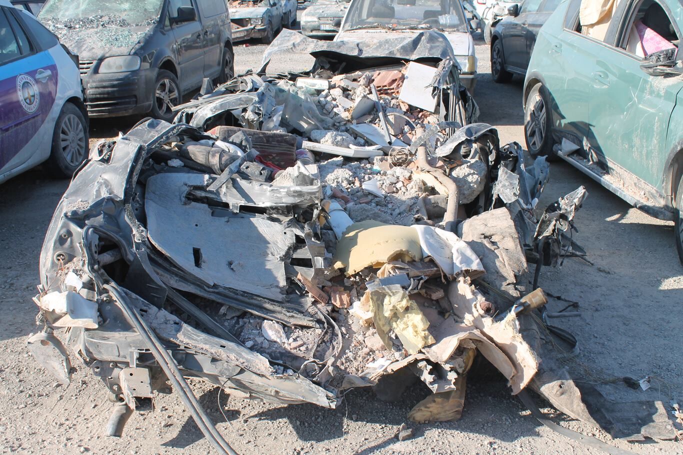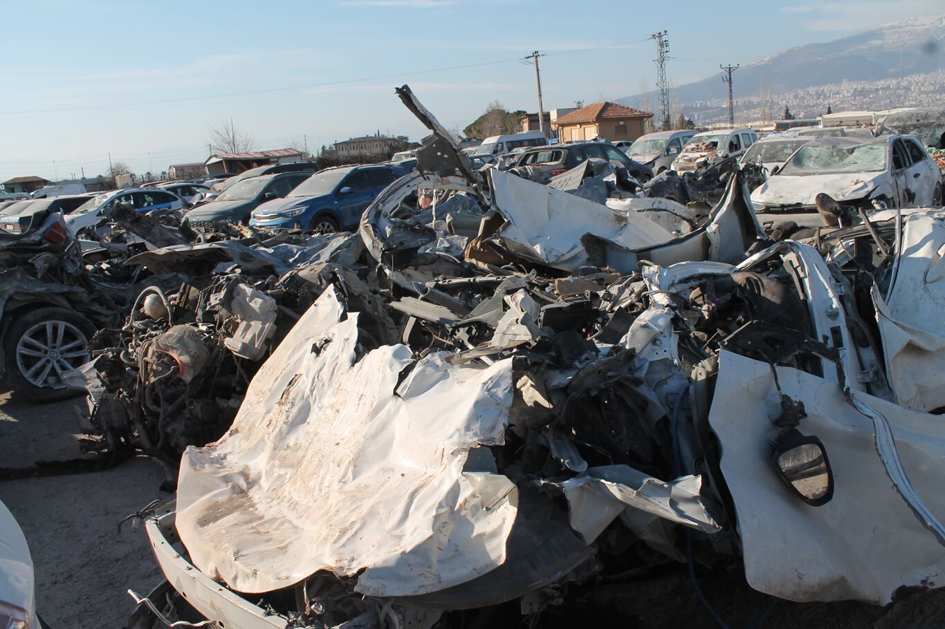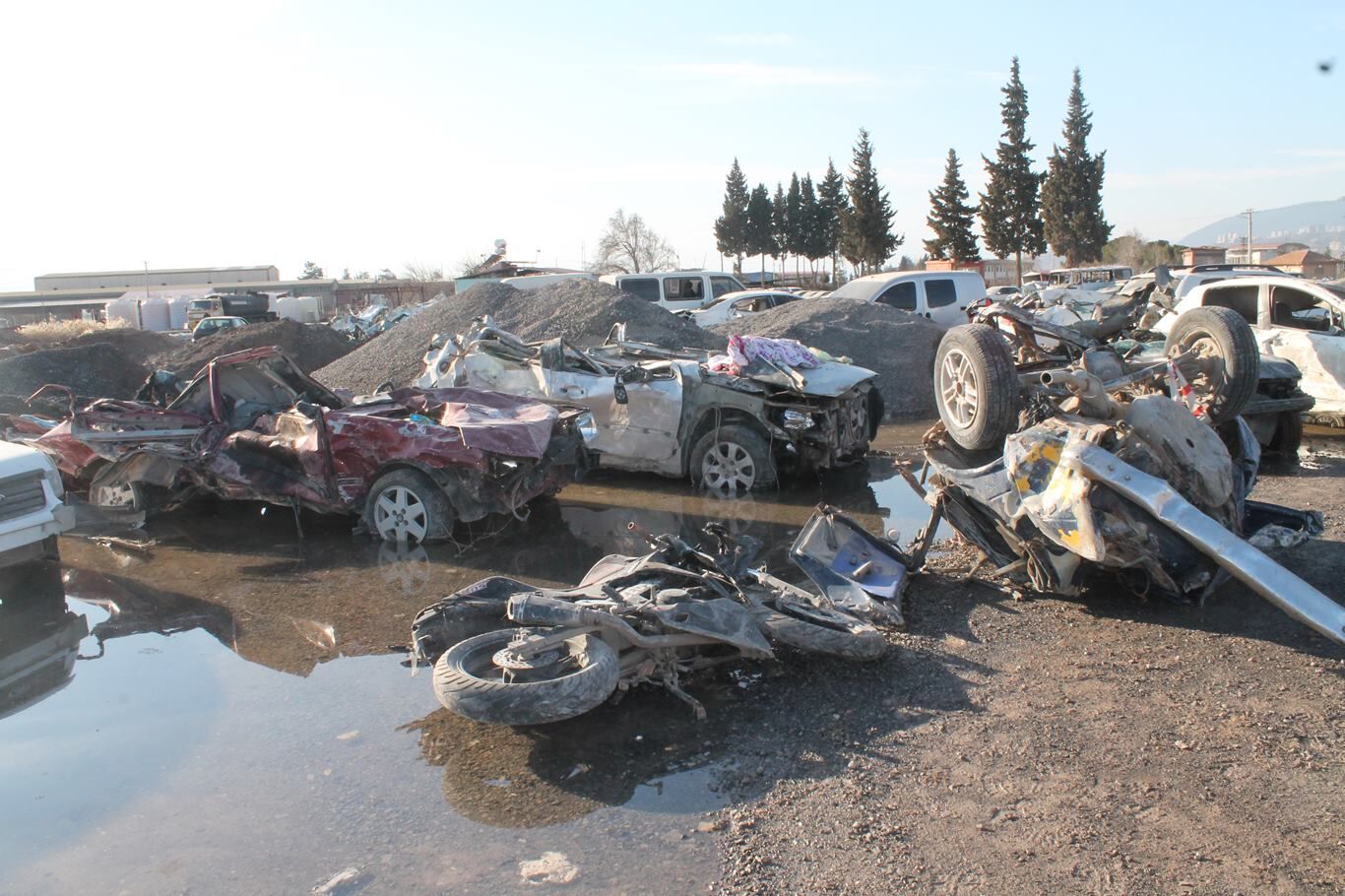 Kahramanmaraş'ta depremde hasar gören araçlar otoparka çekiliyor