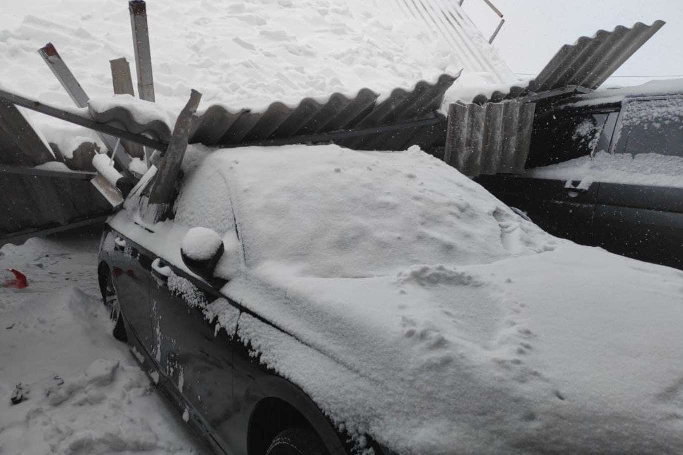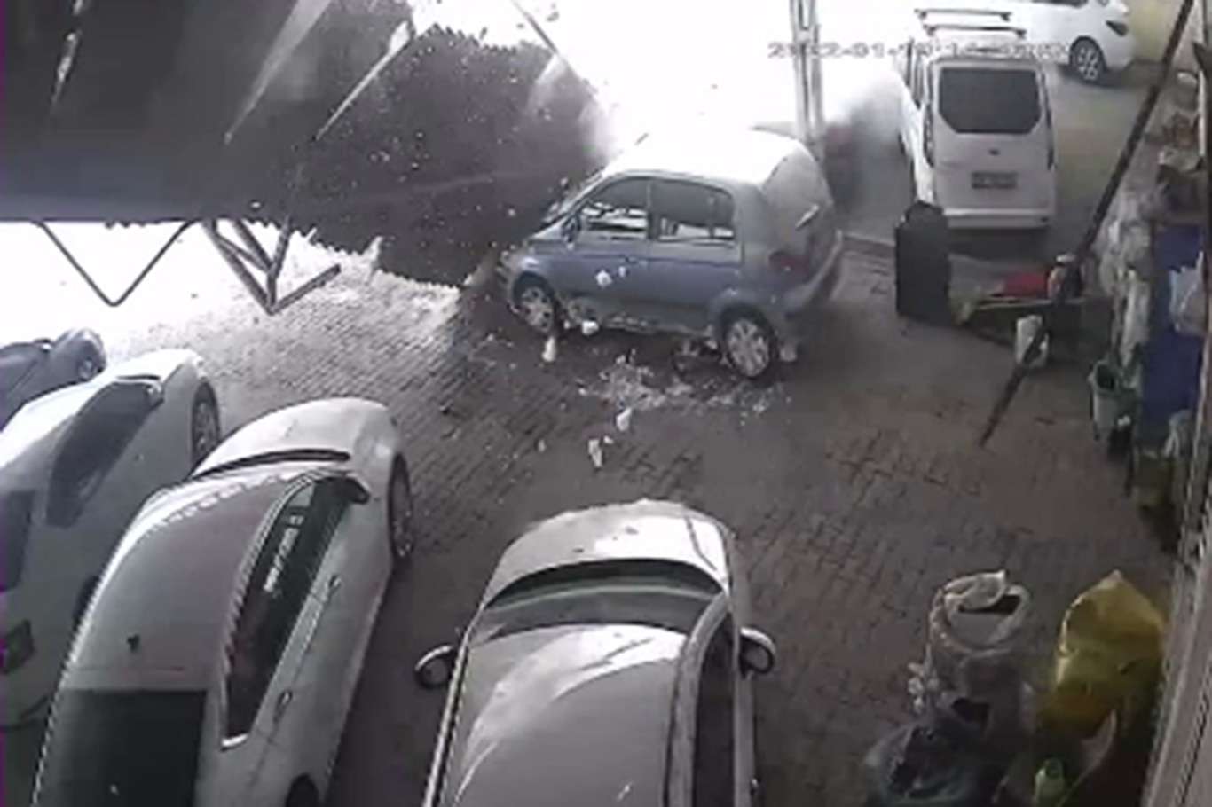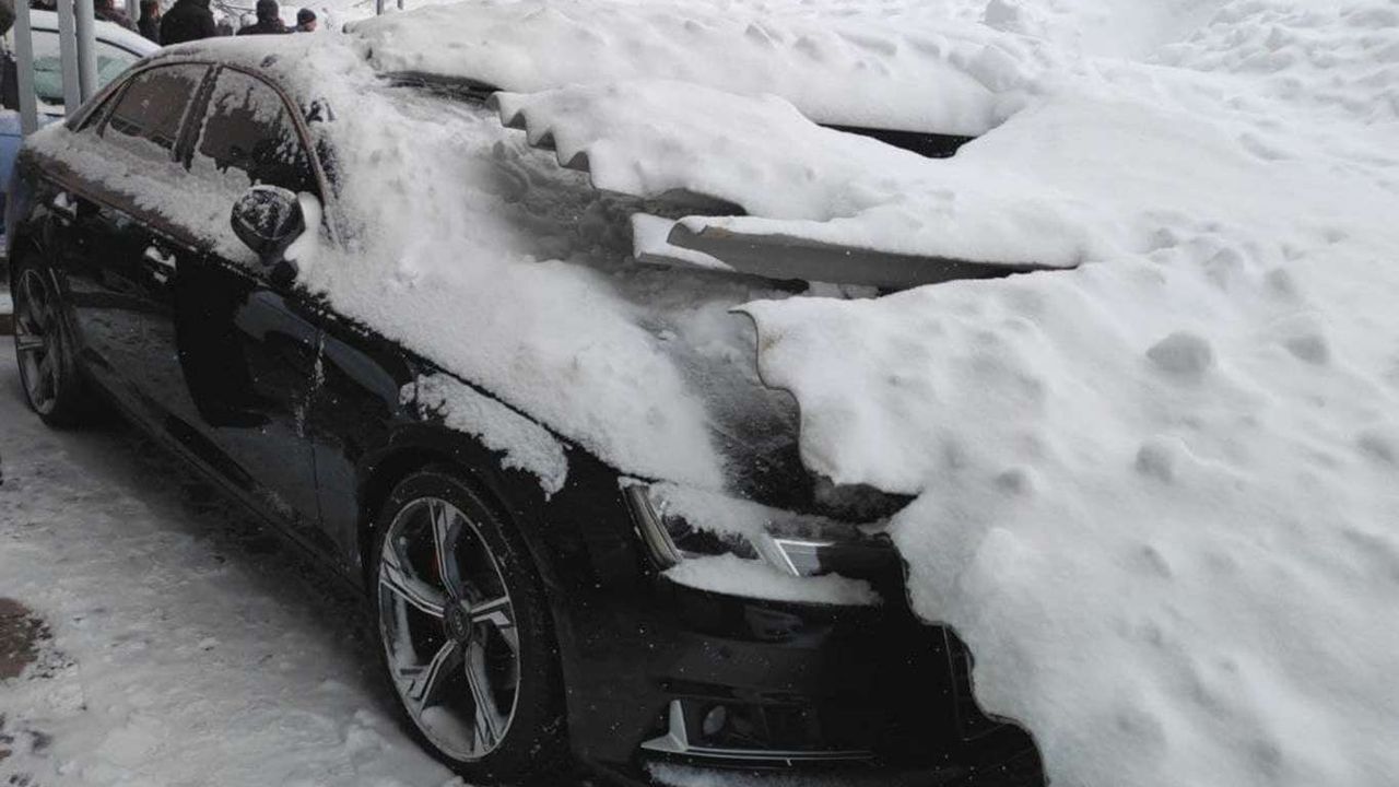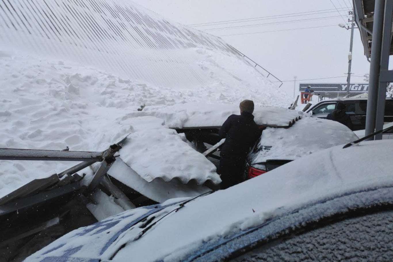 Kar biriken galericiler sitesinin çatısı çöktü: 15 araç hasar gördü