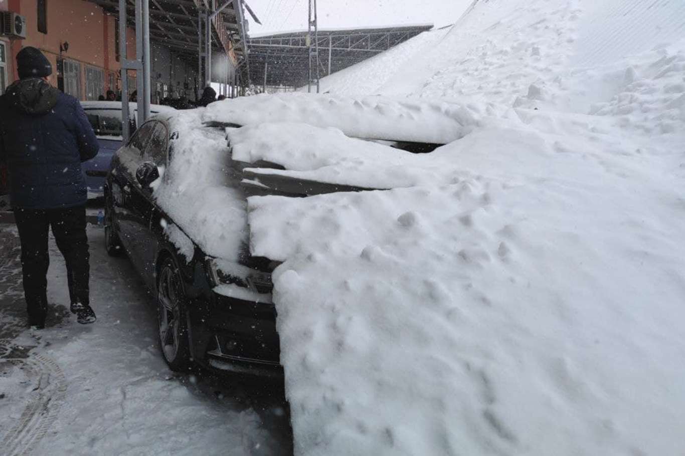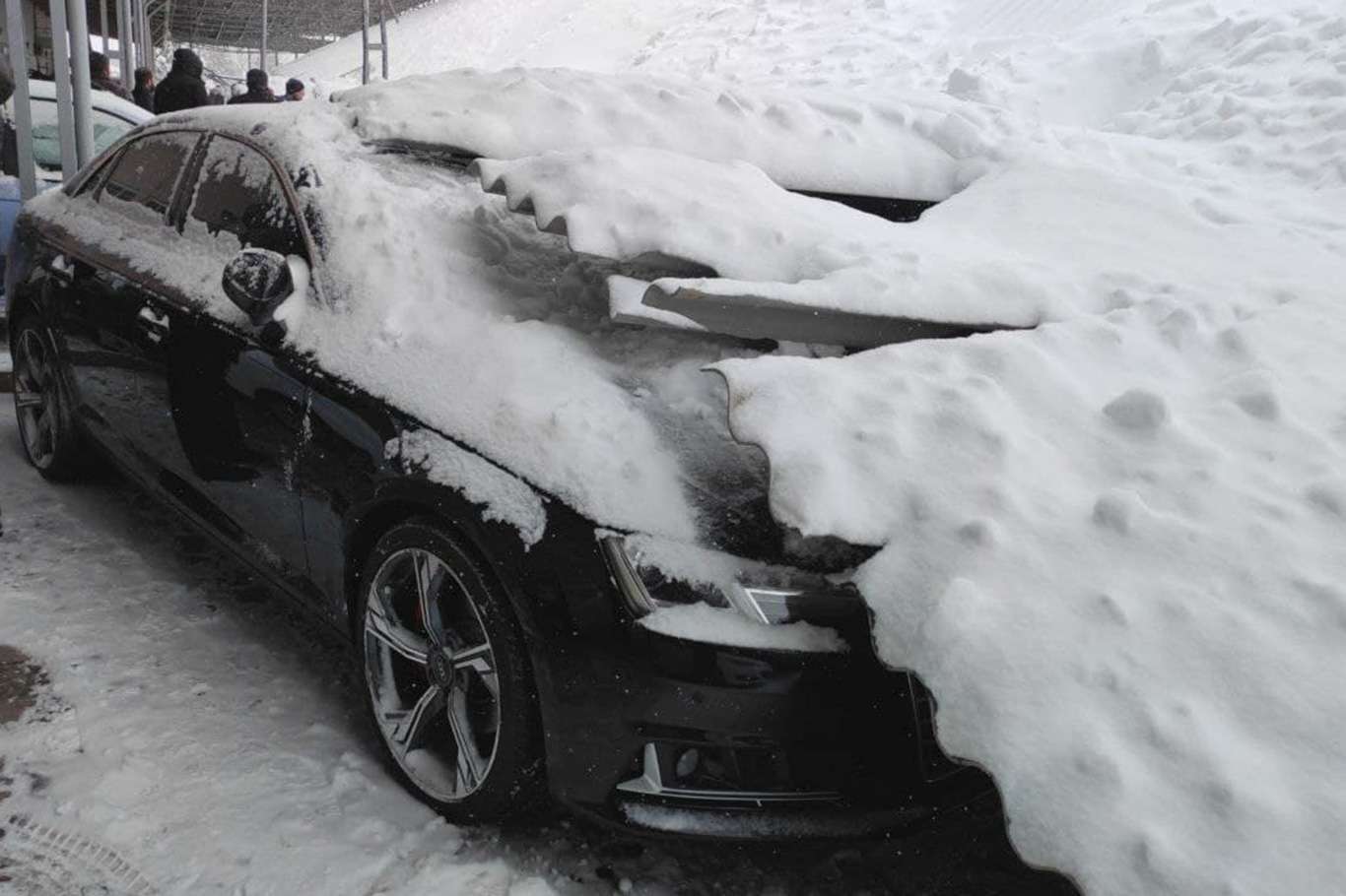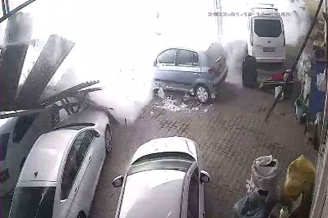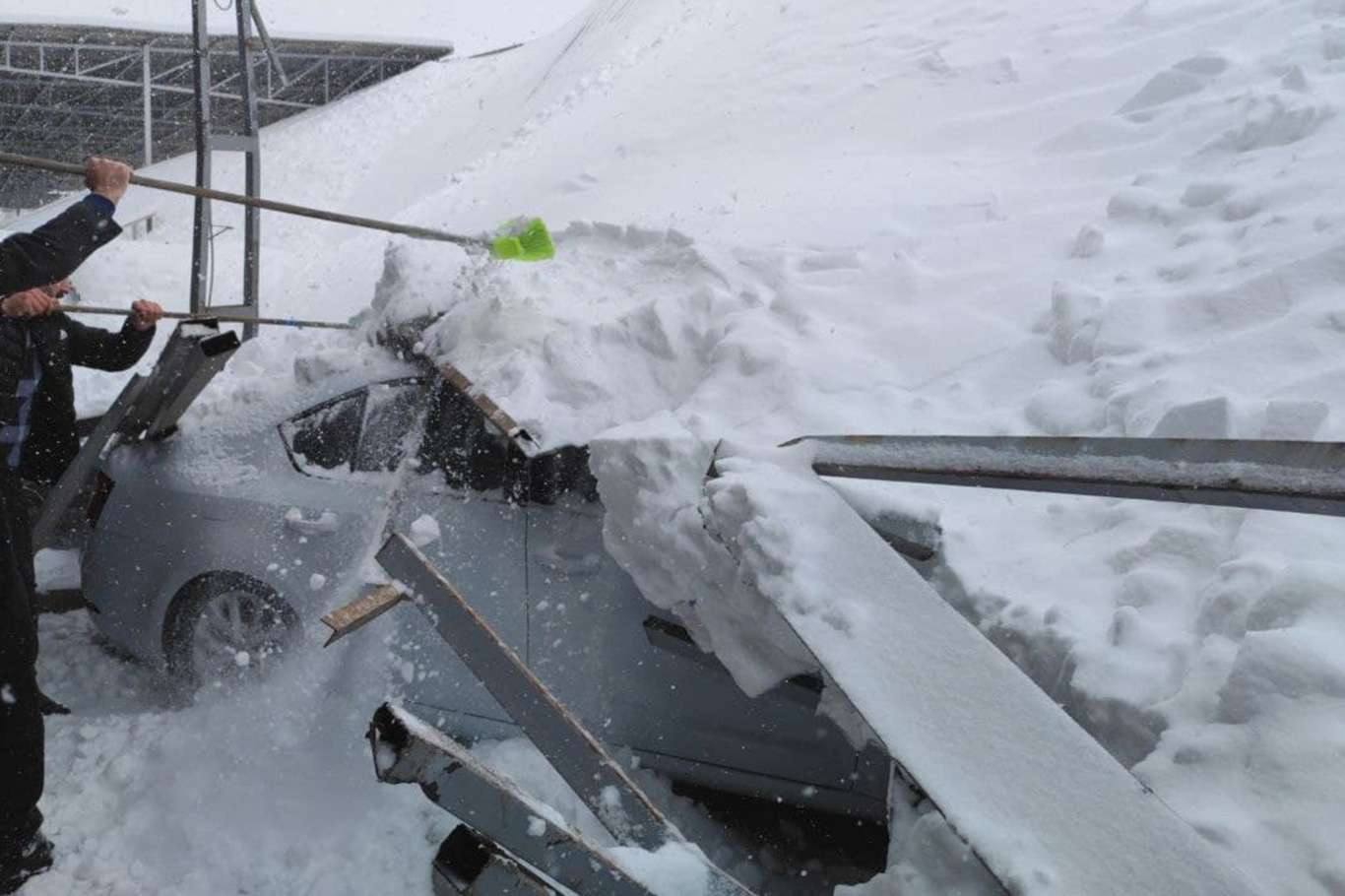 Kar biriken galericiler sitesinin çatısı çöktü: 15 araç hasar gördü